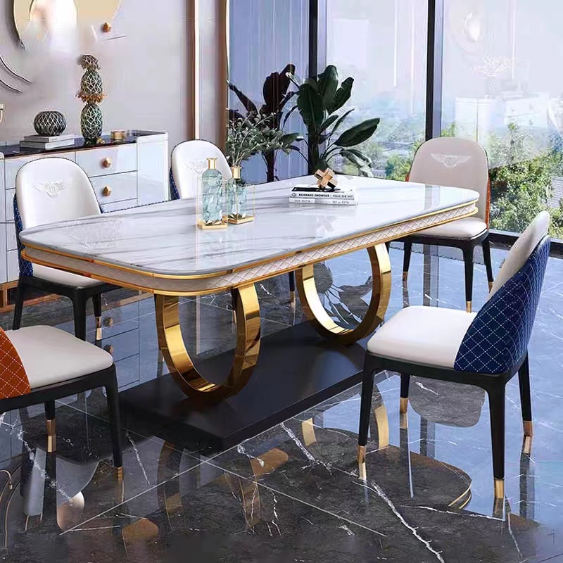 シンプルで豪華な岩板食卓の高級長方形家庭用小戸型現代シンプルな明るいテーブルと椅子の組み合わせ