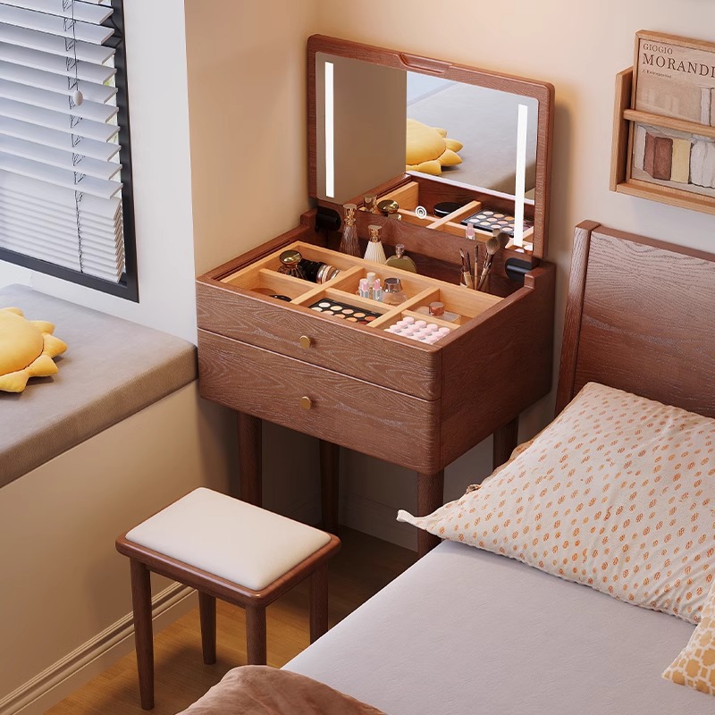 实木迷你梳妆台小型卧室现代简约翻盖床头柜化妆台一体超窄化妆桌