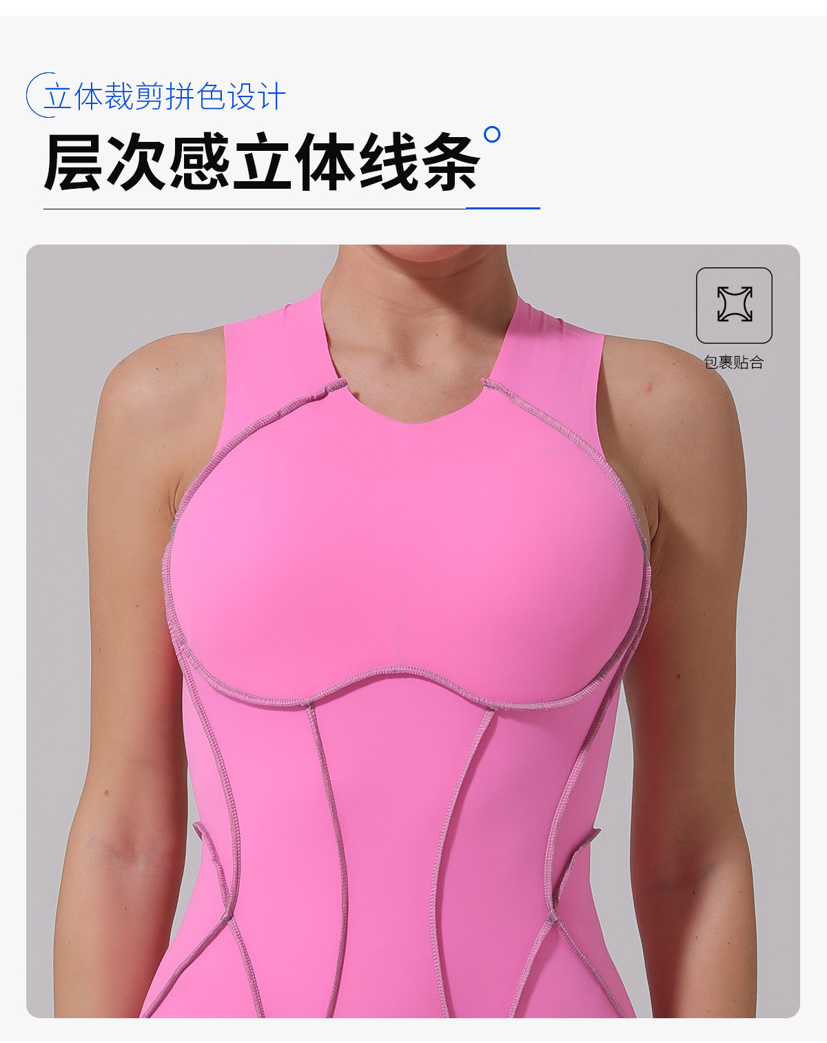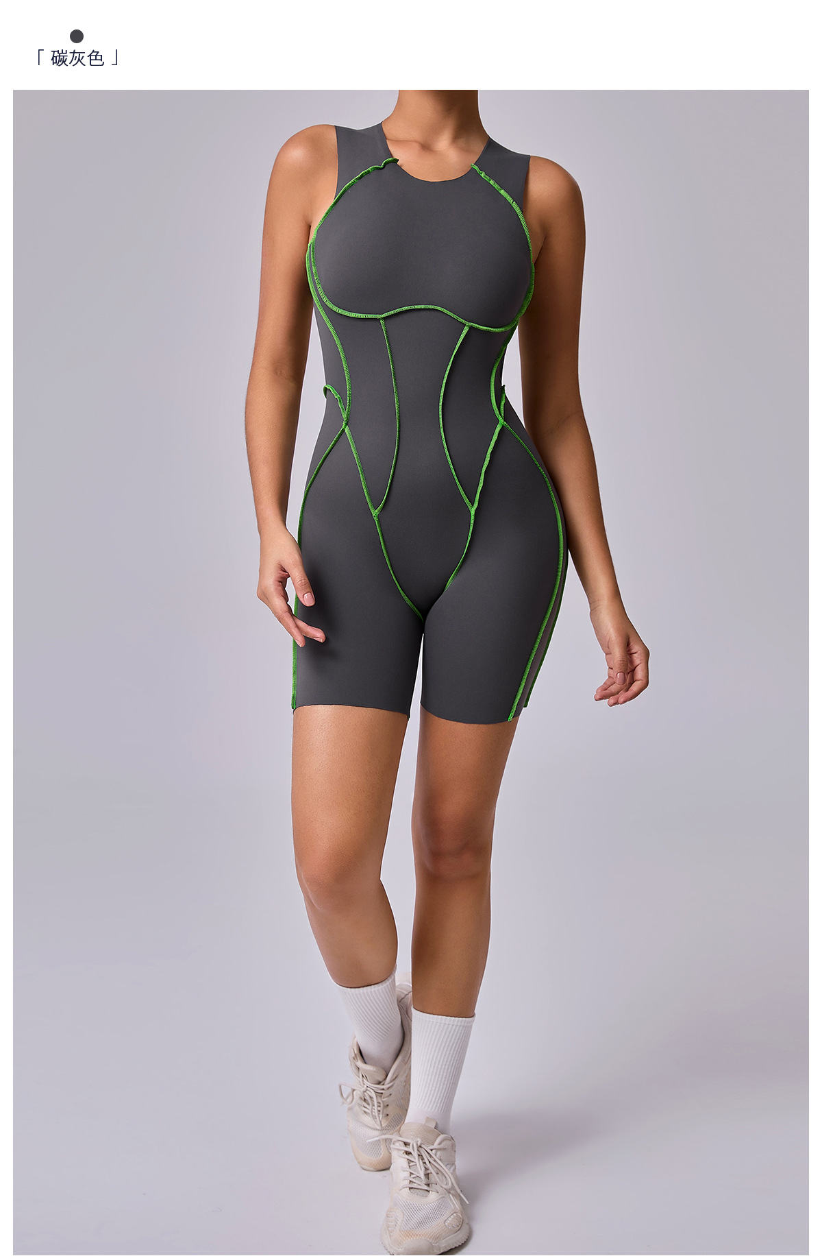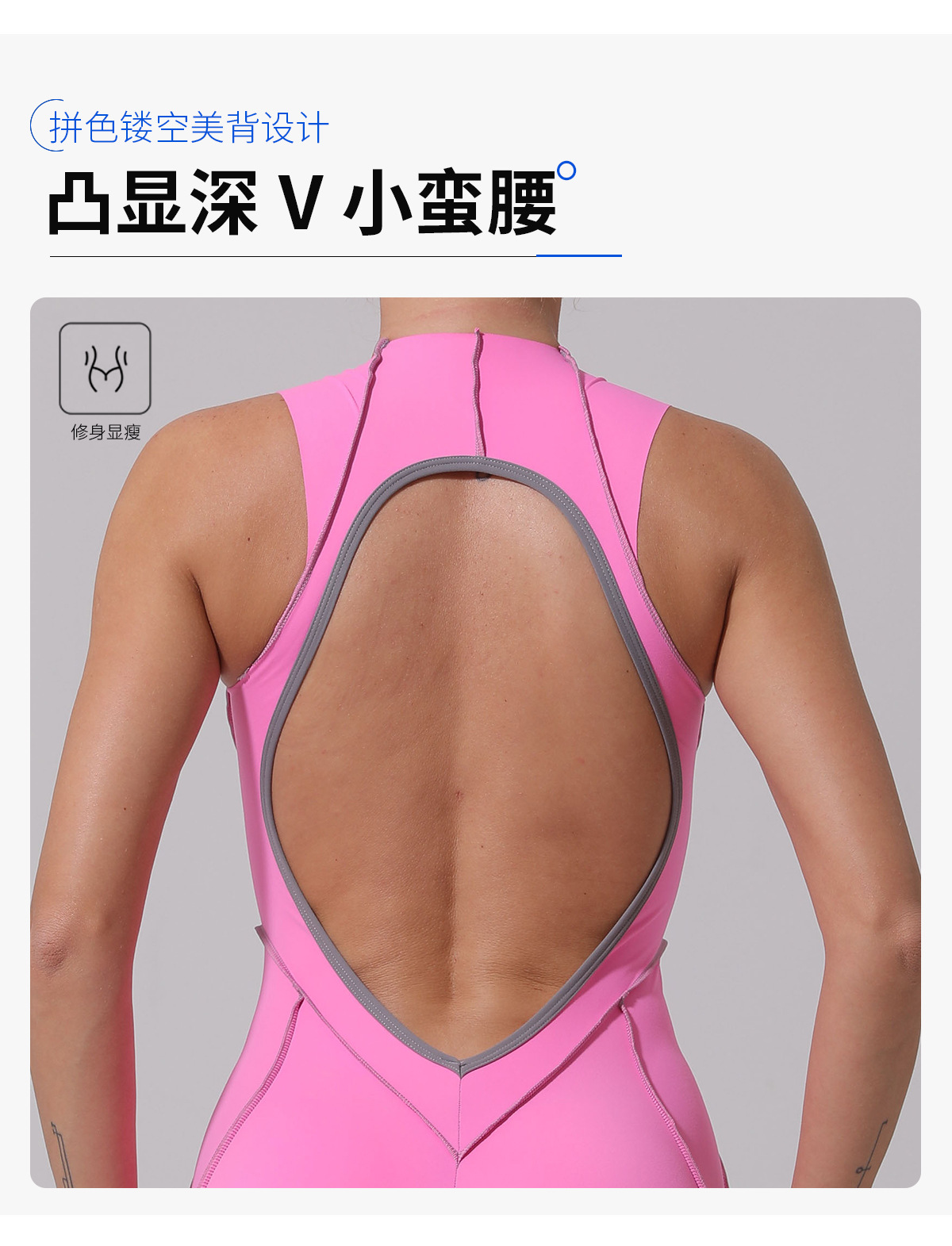 ヨーロッパとアメリカの立体美容スポーツワンピースヨガ服ワンピースタイト半袖バックレスジャンプスーツフィットネス服 50310