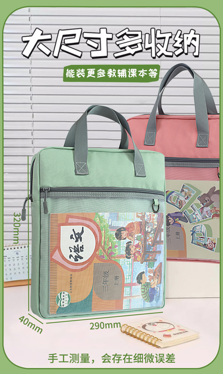 科目分类ファイルバッグ厚手防水オックスフォードモランディ色大容量ジッパー作业袋学生塾バッグ