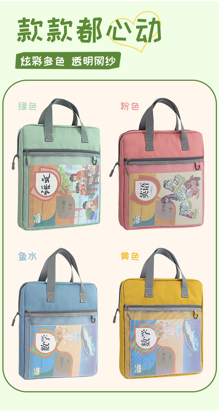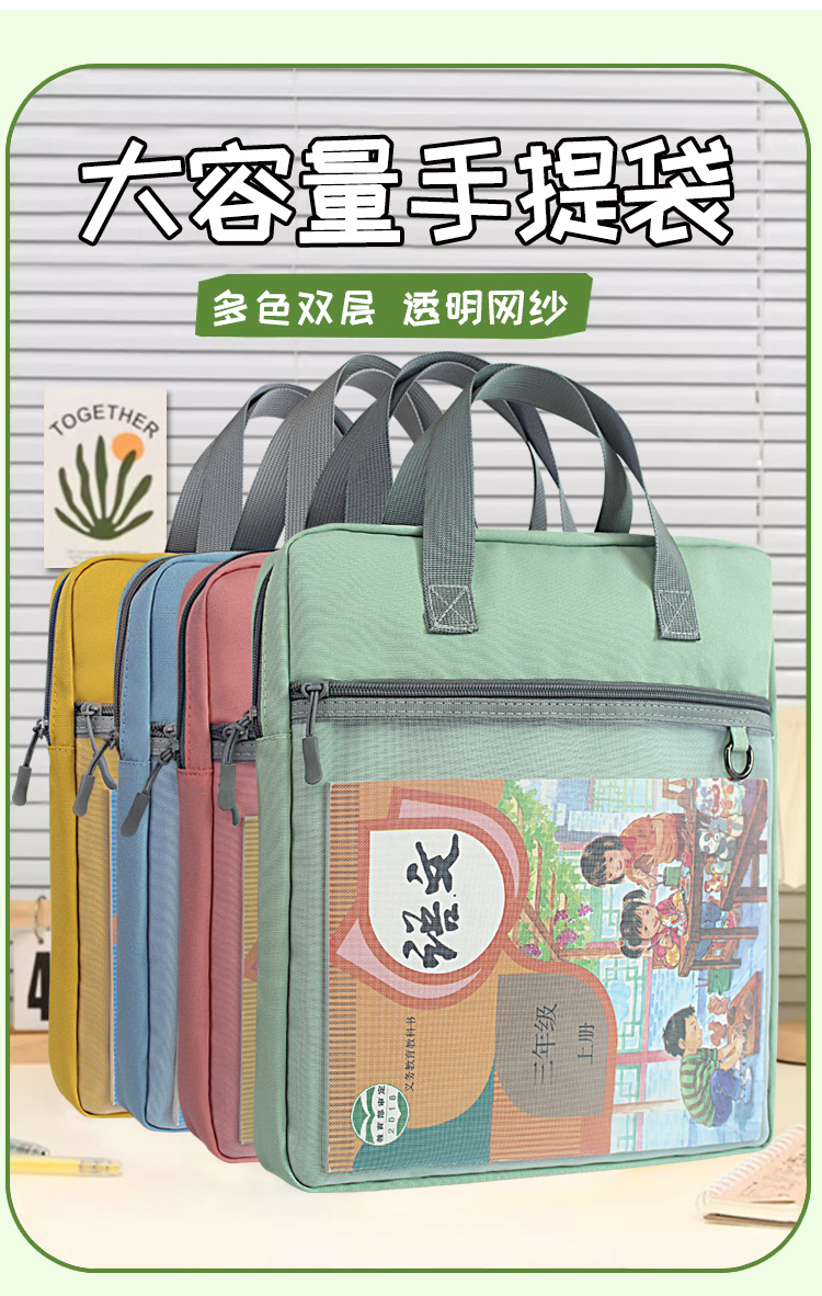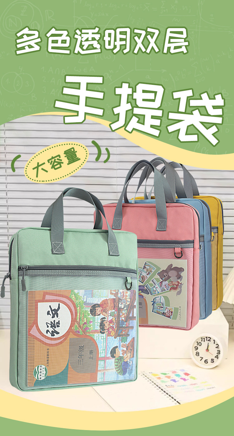透明補習本袋キャンバス収納手提げ書類袋小学生美術シンプルキャンバス純色補習袋
