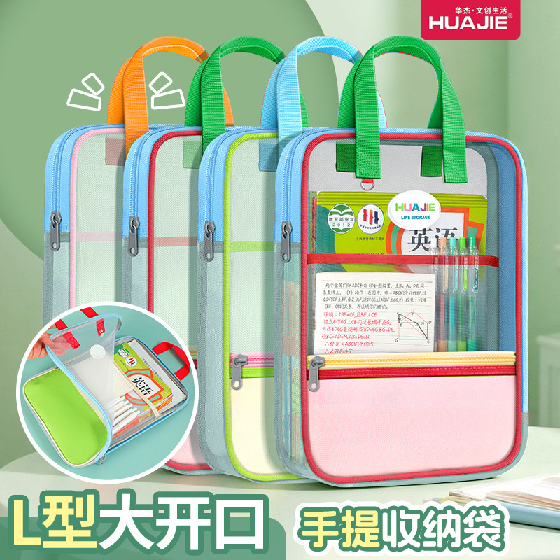 华杰文件袋学生手提袋L型开口拎书袋初中生专用科目分类袋资料袋