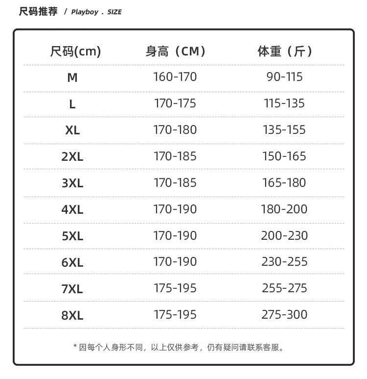 M,L,XL,2XL,3XL,4XL,5XL,6XL,7XL,8XL