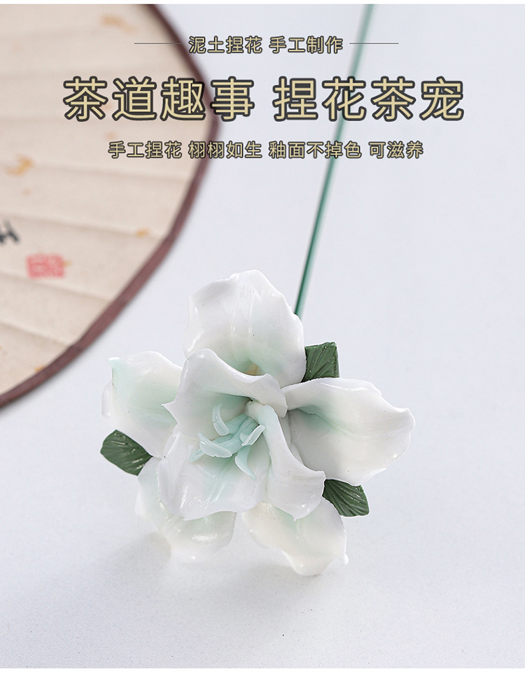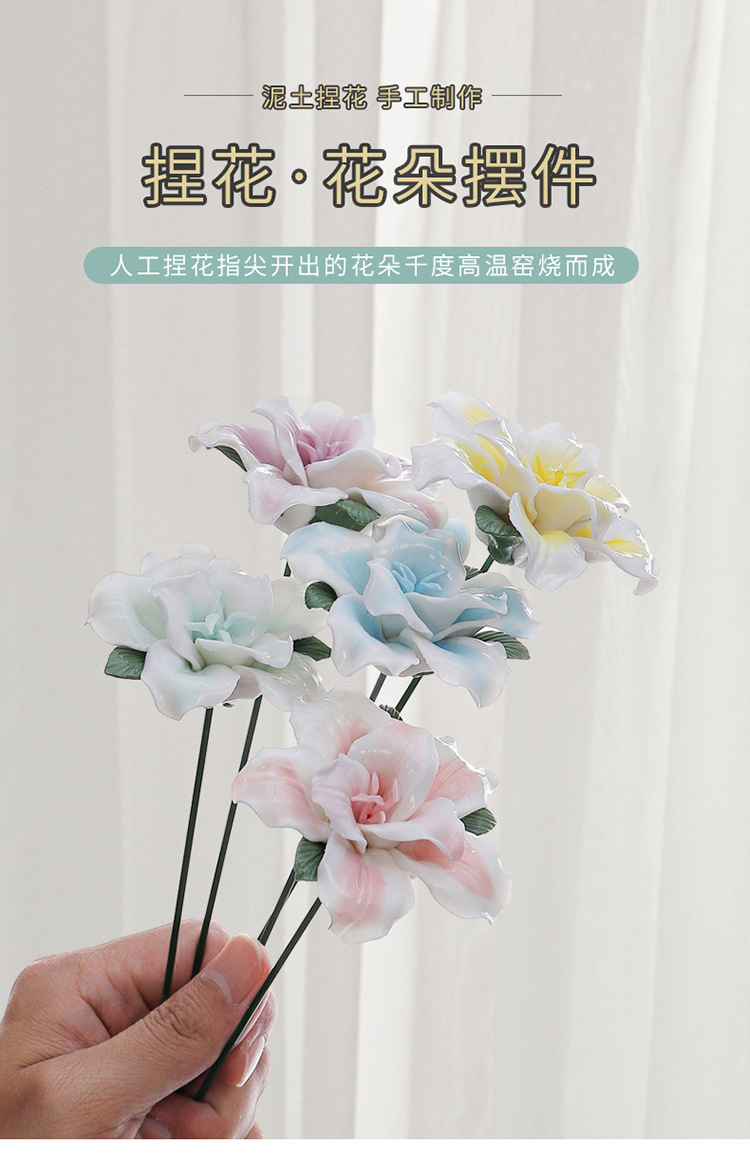 小さいサイズの陶磁器の鉄棒の小さい花の徳化の陶磁器の手は花のアクセサリーの手作りの置物をつまみます。