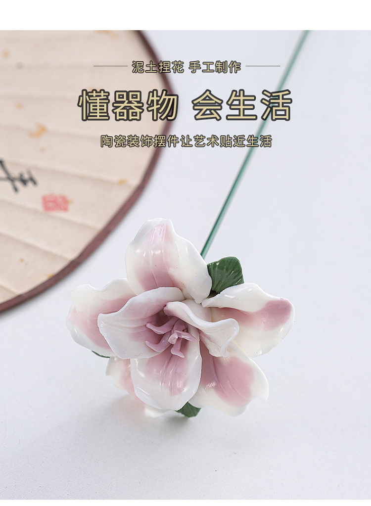 創意純手作り陶磁器百合鉄棒装飾置物茶卓展示棚客間置物