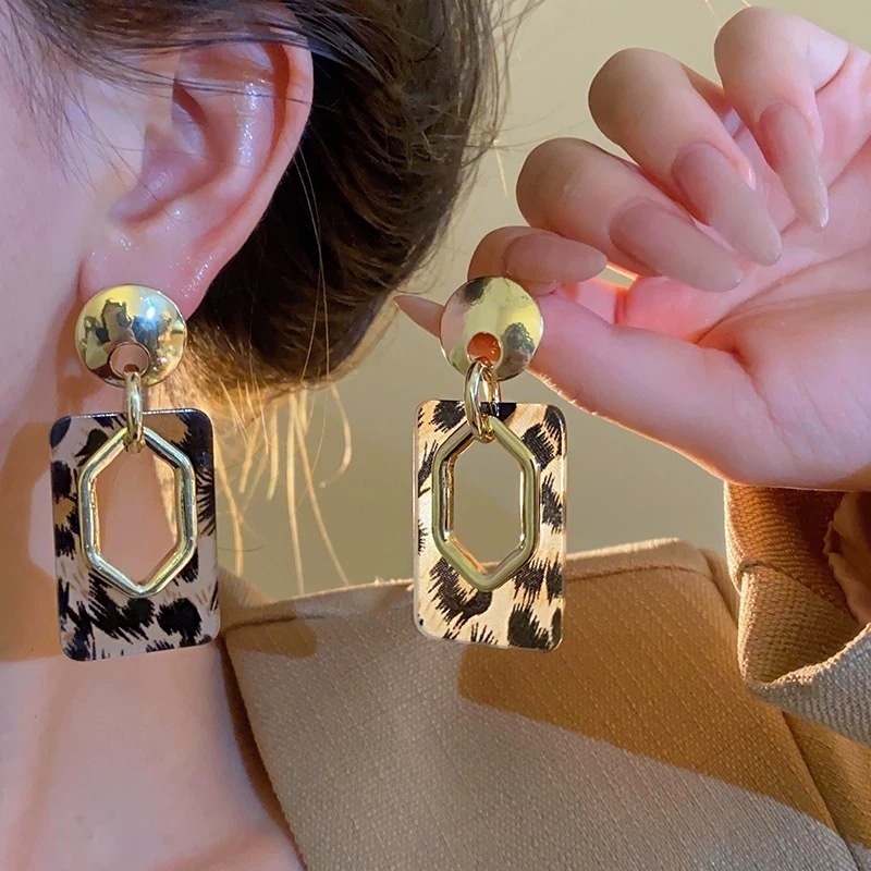 誇張されたレトロなヒョウ柄スクエアイヤリング 2025 新しいホットスタイルイヤリングライト高級ハイエンド気質イヤリング女性用