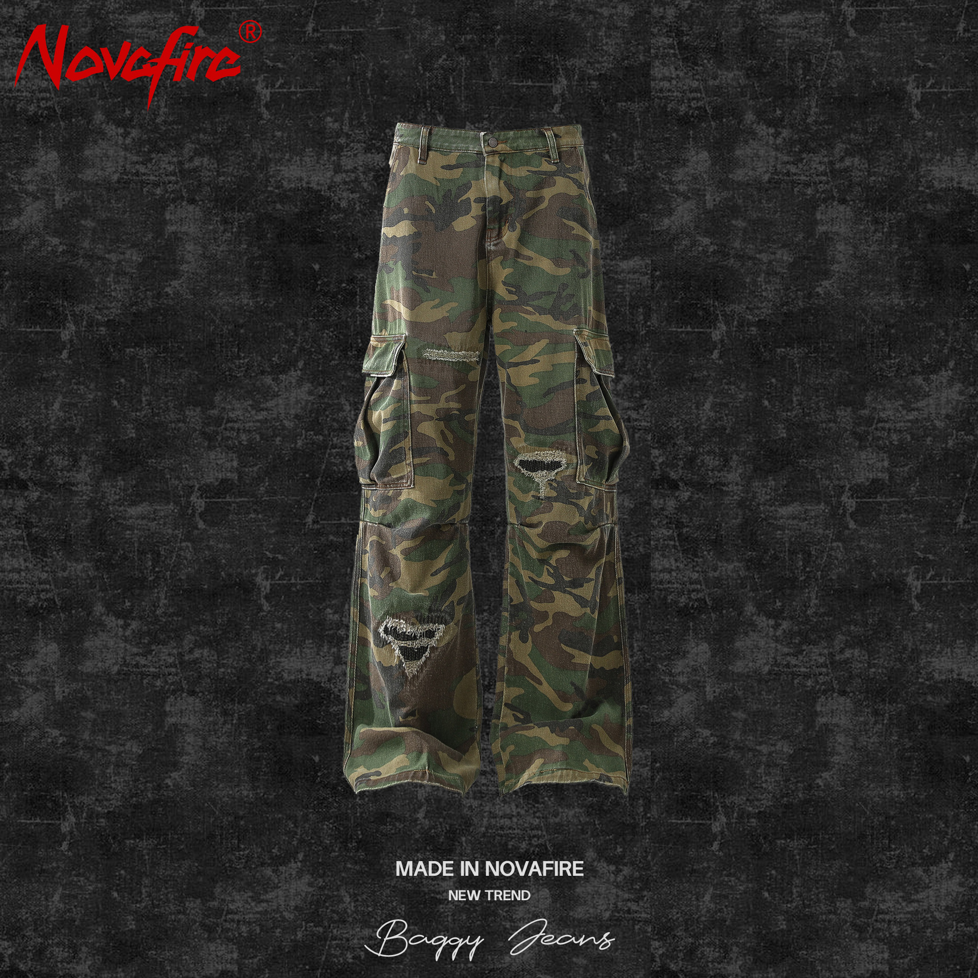 NOVAFIRE高街破洞迷彩工装ズボンアメリカトレンド大ポケットカジュアルパンツvieb風長ズボン