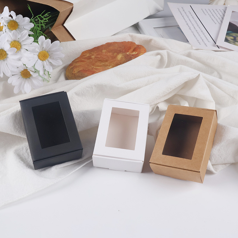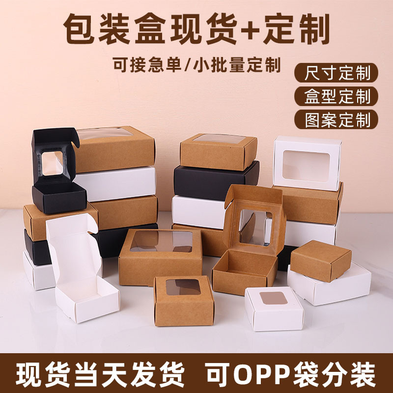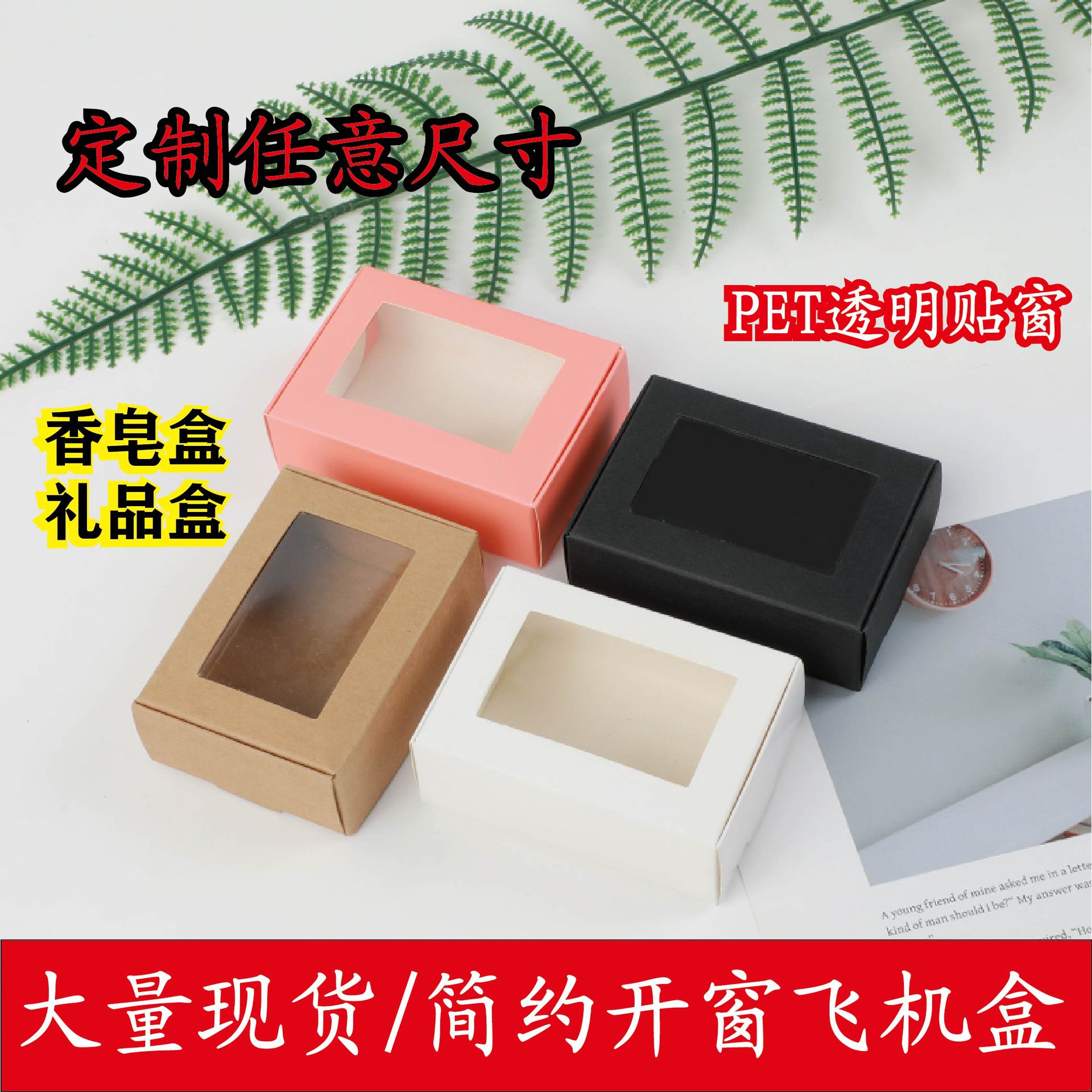 跨境现货牛皮纸盒开窗飞机盒白卡黑卡彩盒手工皂文创包装盒定制