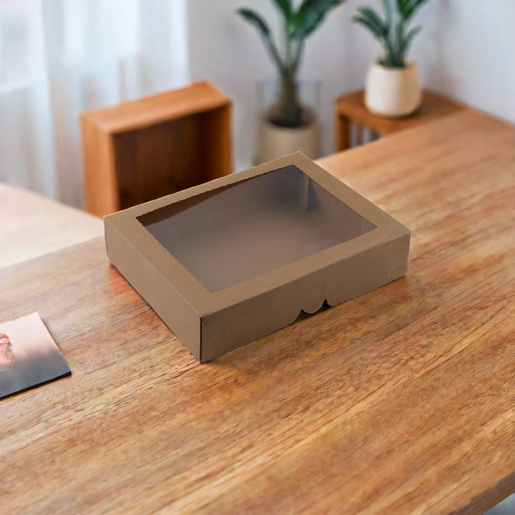 折り畳みスポットクラフト紙PVC透明窓天地蓋包装箱長方形手土産箱