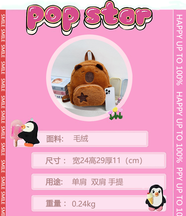 日本のかわいいぬいぐるみのリュックサックの大容量の新しい漫画の斜めのショルダーバッグの女性のカピバラのぬいぐるみのリュックサック