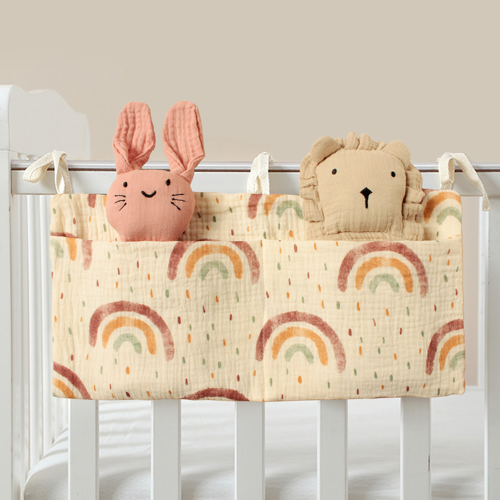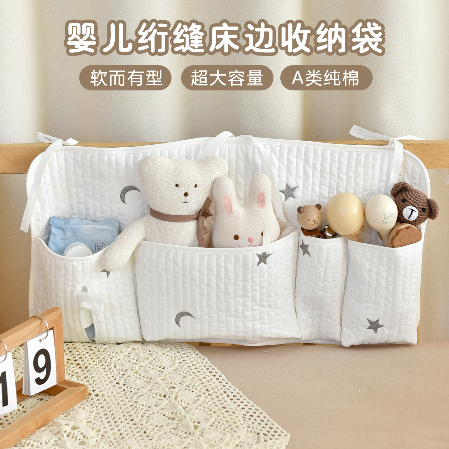 可以当作婴儿的床边奶瓶,玩具,尿不湿收纳