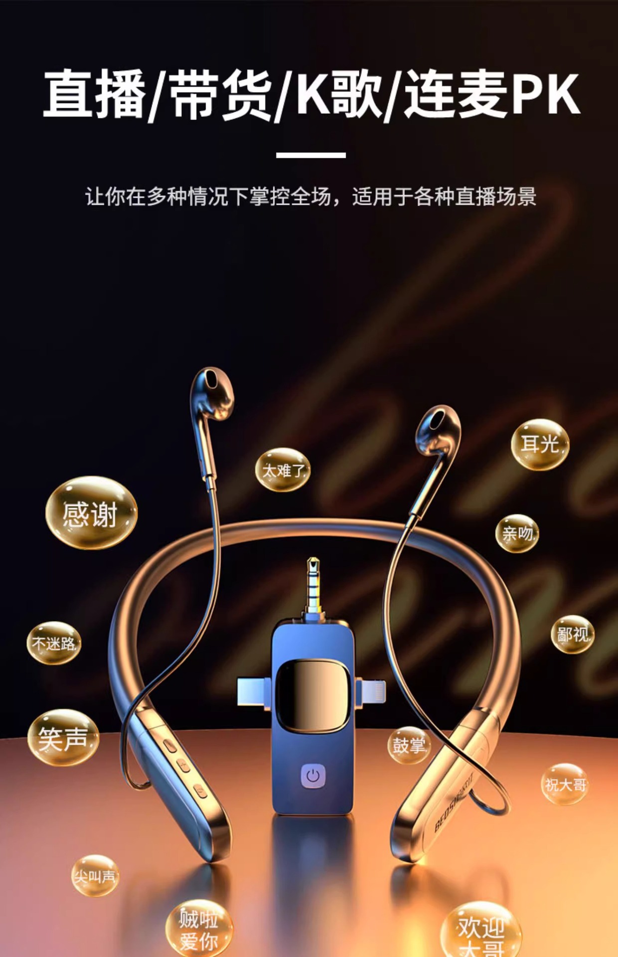 ライブワイヤレスヘッドセットオールインワンサウンドカードモニタリングアンカー携帯電話屋外Bluetoothヘッドセットイヤーバックモニタリング首掛けタイプ