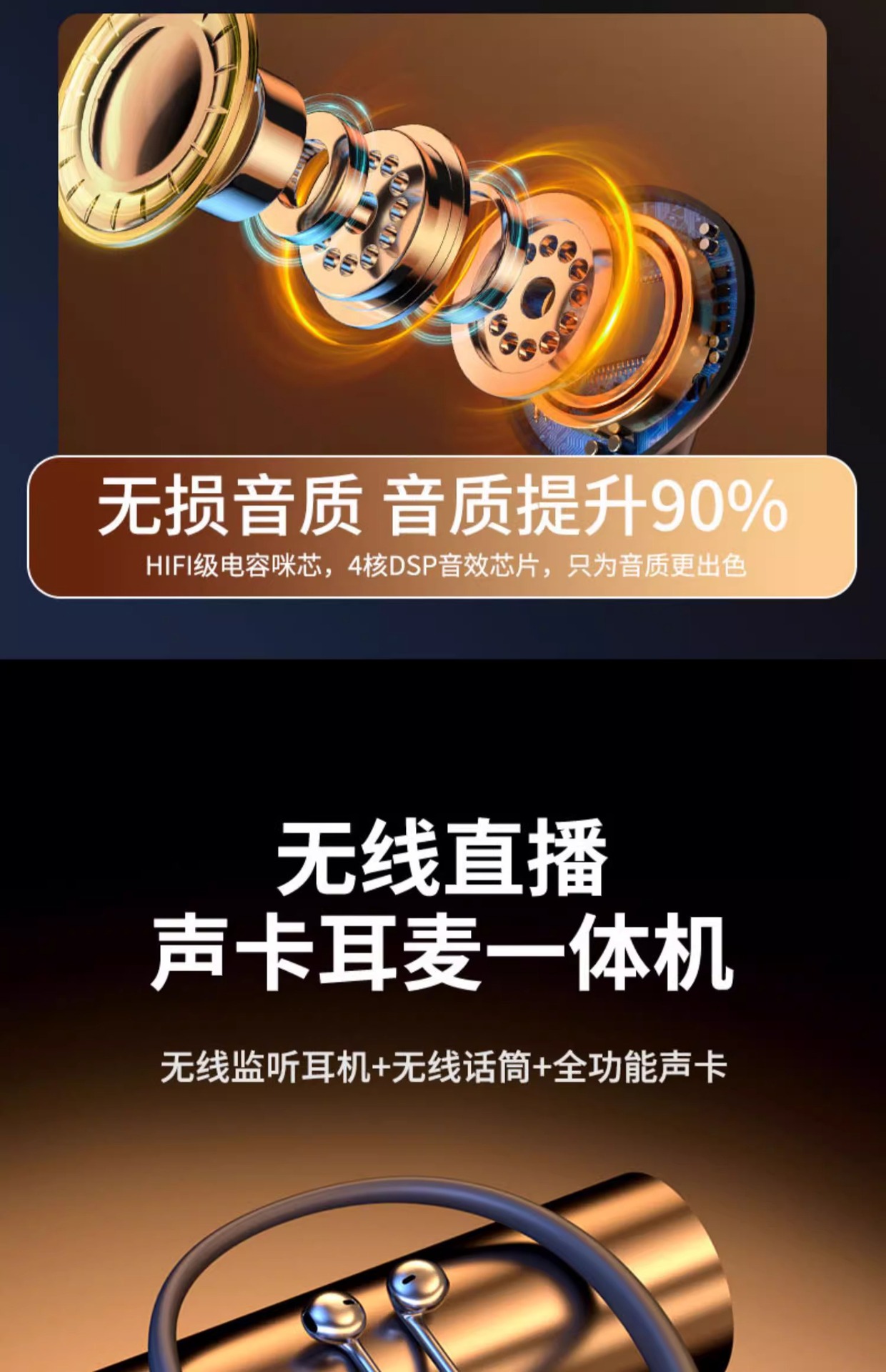 2025年新型ワイヤレスマイクライブブロードキャストサウンドカードヘッドセットマイクオールインワンネット有名人同じスタイルでカラオケを歌う