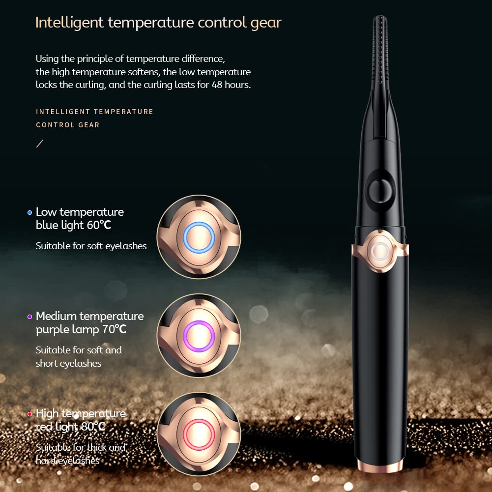 【3 Temperature adjustment】The heated eyelash curler has 3 temperature modes: low temperature 60°C, blue light; medium temperature 70°C, purple light; high temperature 80°C, red light. Short press to toggle temperature. Suitable for all kinds of real and false eyelashes.