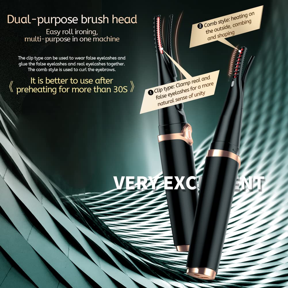 【Dual-purpose eyelash curler】The clip of the eyelash curler can clamp the real and false eyelashes together and heat them together to create naturally curled eyelashes. The external tooth comb can comb the eyelashes, the curved brush head perfectly fits the curvature of the eyelashes, and the anti-scalding comb design ensures that there will be no burns.