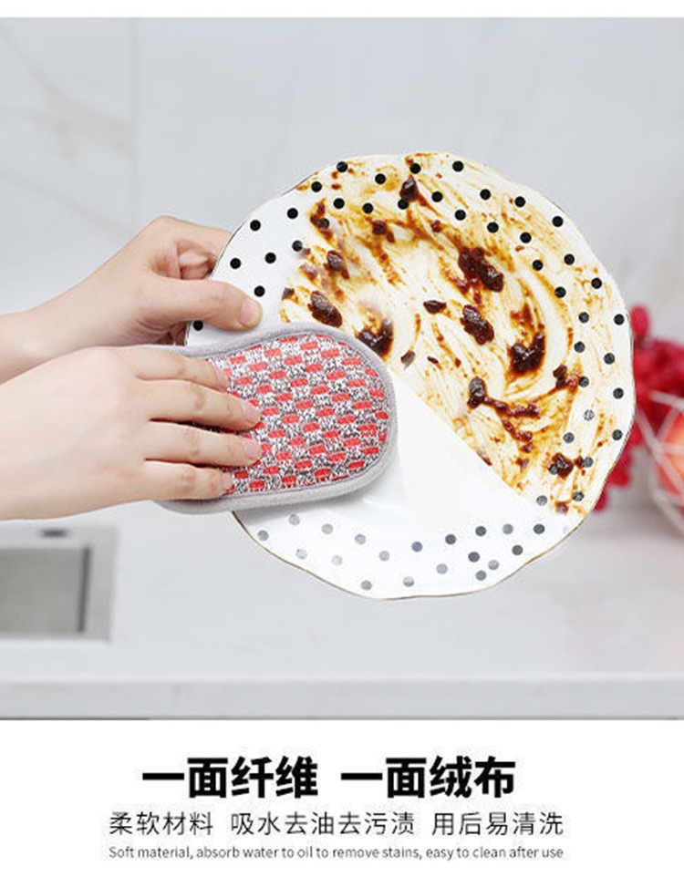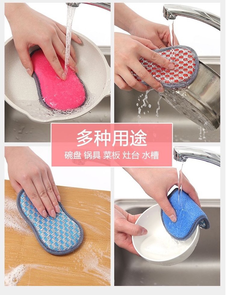 家庭用キッチン食器洗いスポンジは鍋を傷つけず、鍋や食器を拭く、両面マジックワイプたわし、食器用布