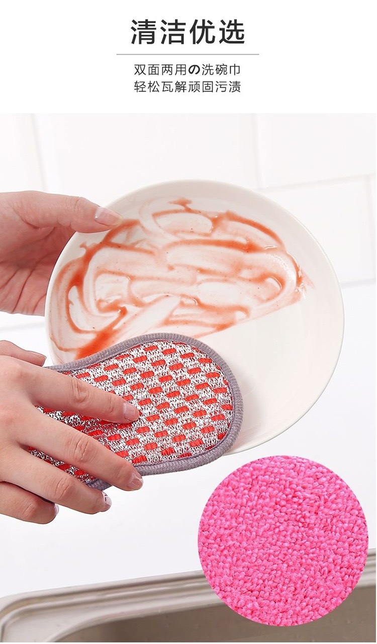 ✷ たわし布両面食器洗いスポンジキッチン雑巾ノンスティックオイルマジックスクラブポットふきん鋼線スポンジ
