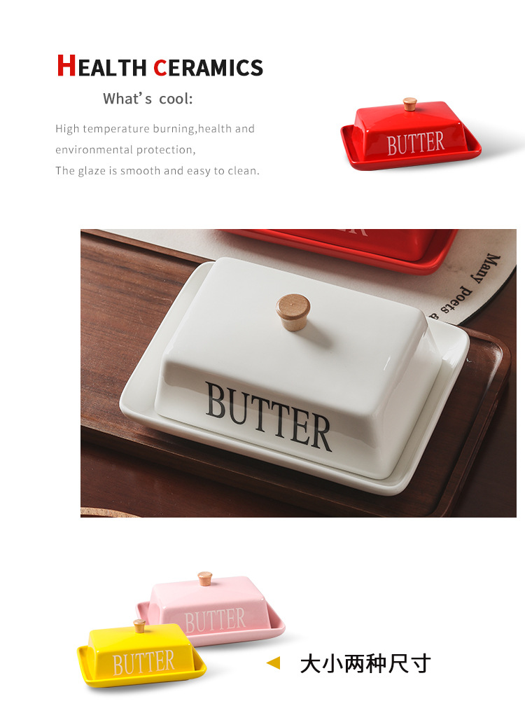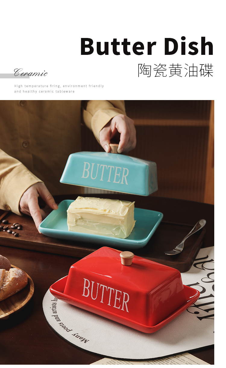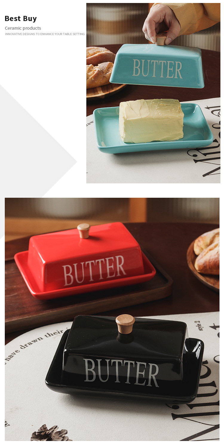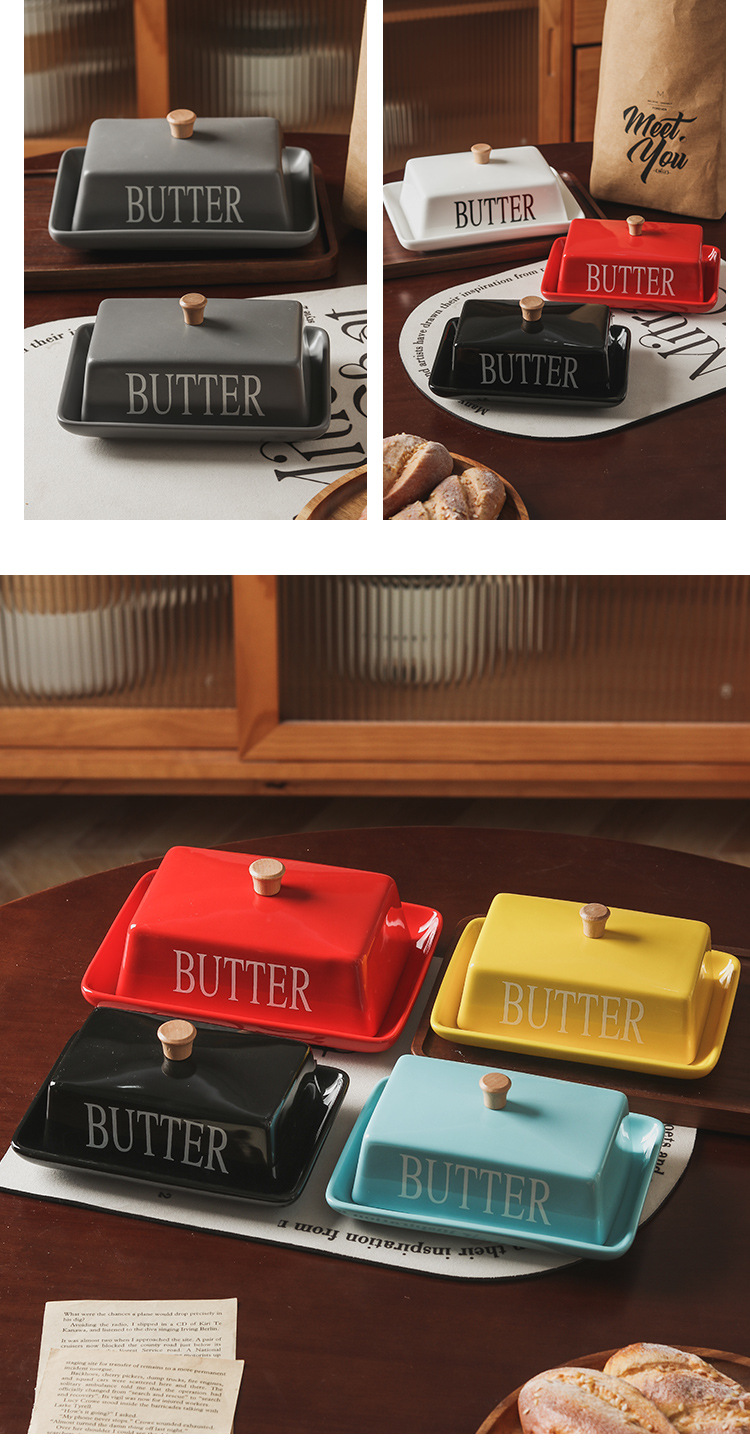 北欧風の蓋付きセラミック製バターディッシュ、家庭用デザート、チーズ、レストラン用バターディッシュ、新作