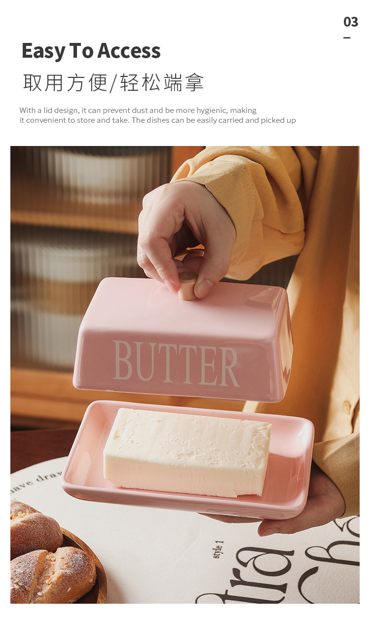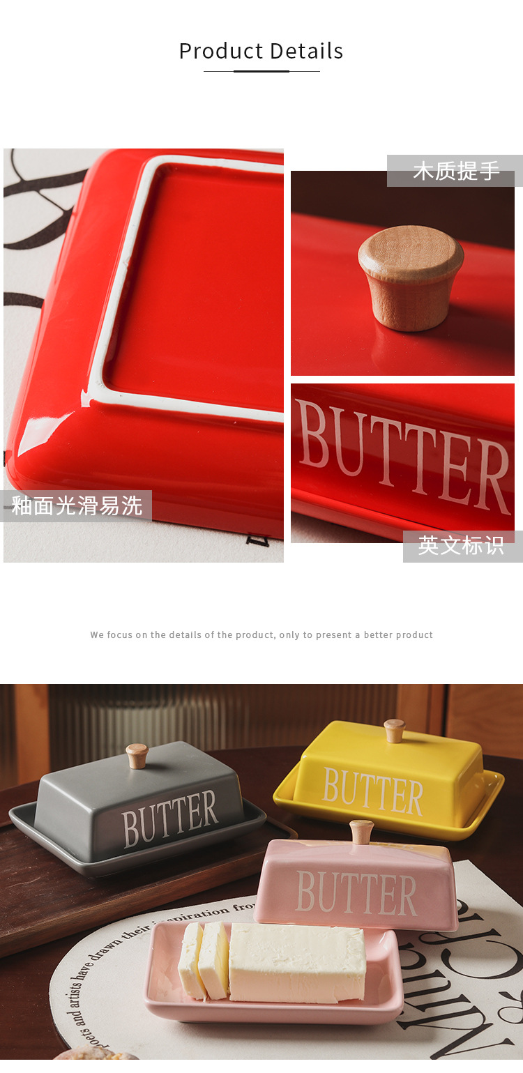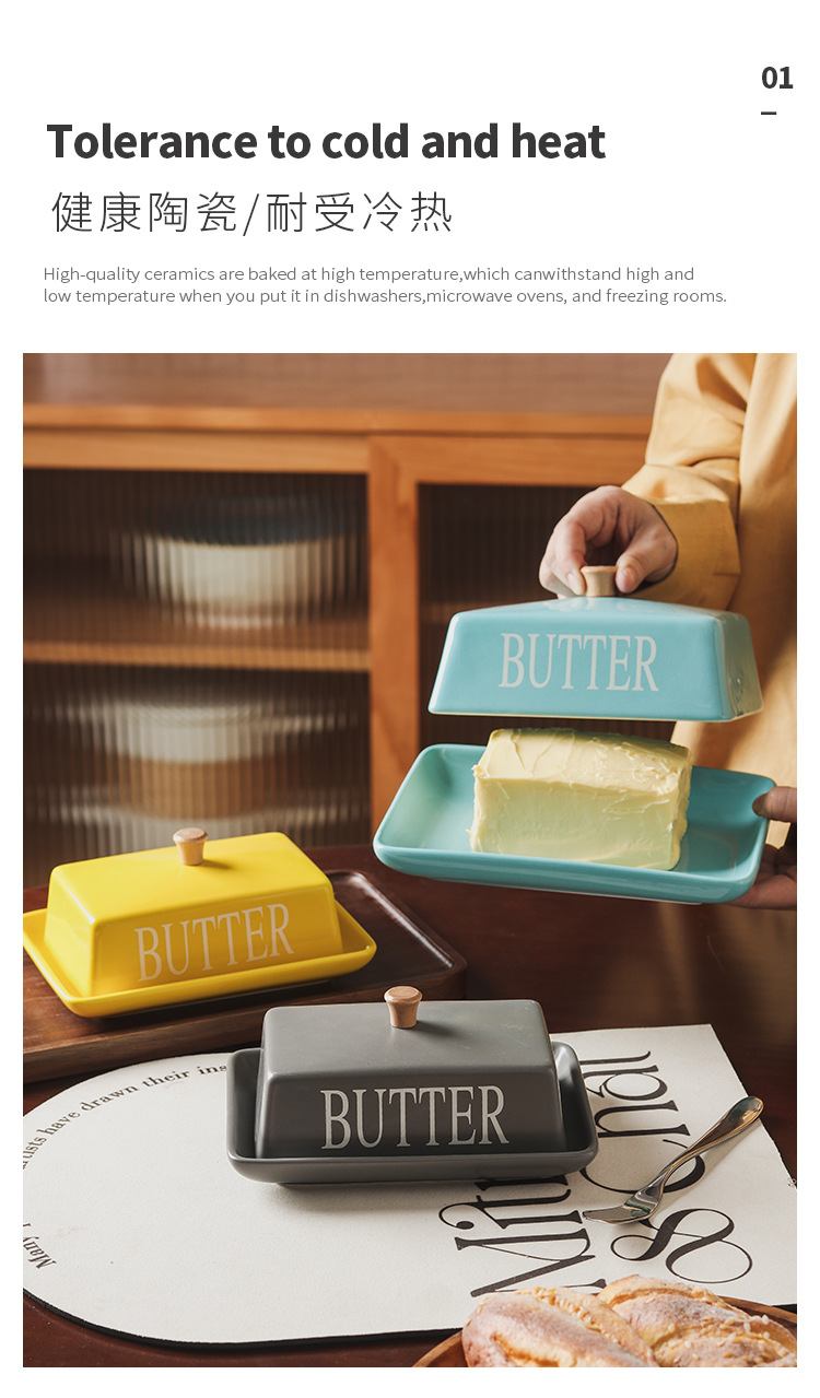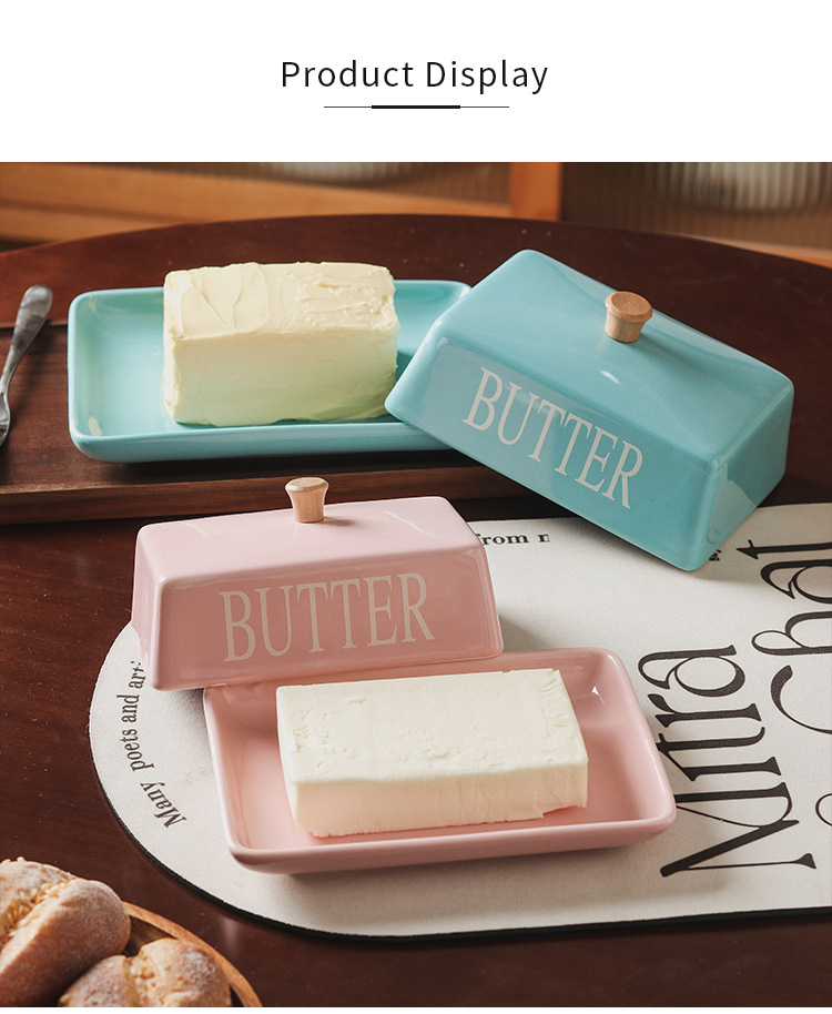 北欧風の蓋付きセラミック製バターディッシュ、家庭用デザート、チーズ、レストラン用バターディッシュ、新作