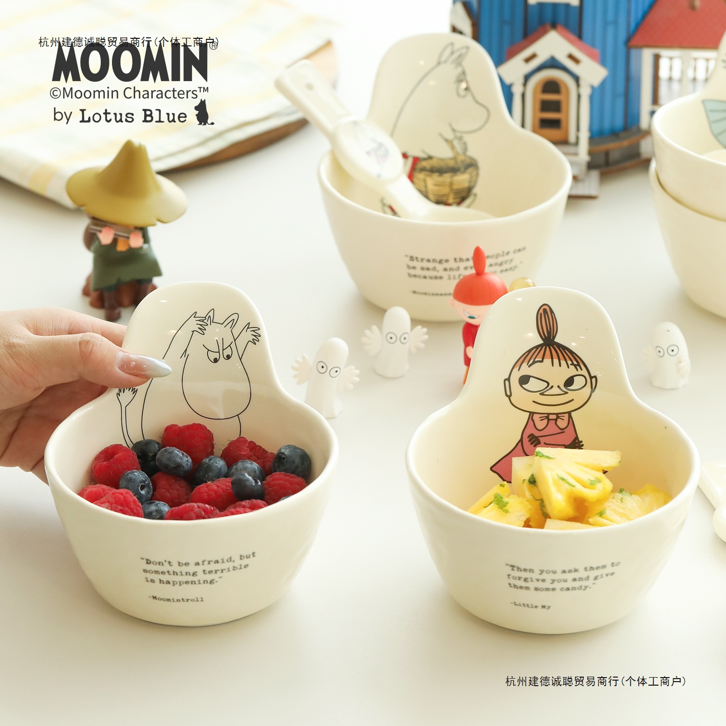 moomin姆明家用赵露思同款卡通陶瓷可爱带手柄碗沙拉碗米饭碗汤碗