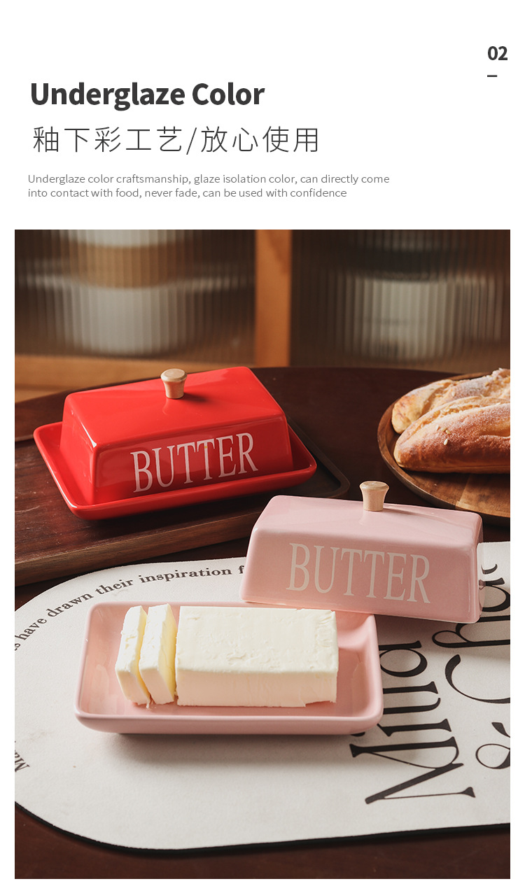 長方形のバター箱アマゾンの国境を越えたレストランの洋式家庭用チーズ箱バター皿陶磁器バター箱ナイフ付き
