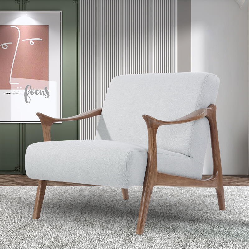 北欧無垢材ソファチェア屋外バルコニーシングルレジャーチェアハイバックシングルコーヒーチェア快適な無垢材の椅子