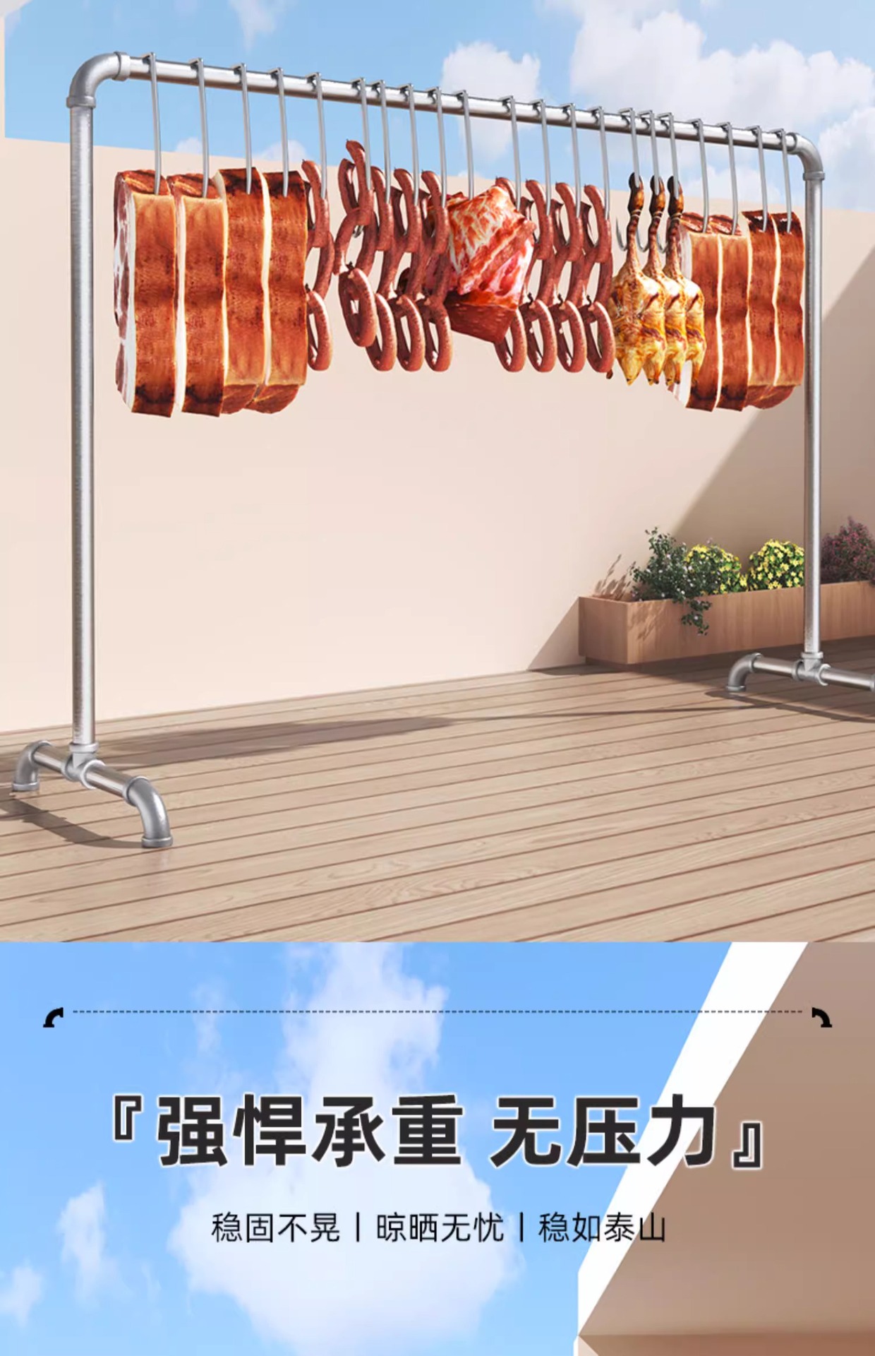 挂肉晾晒架子落地家用晒猪肉腊肉烤鸭香肠火腿立式加粗户外晾肉架