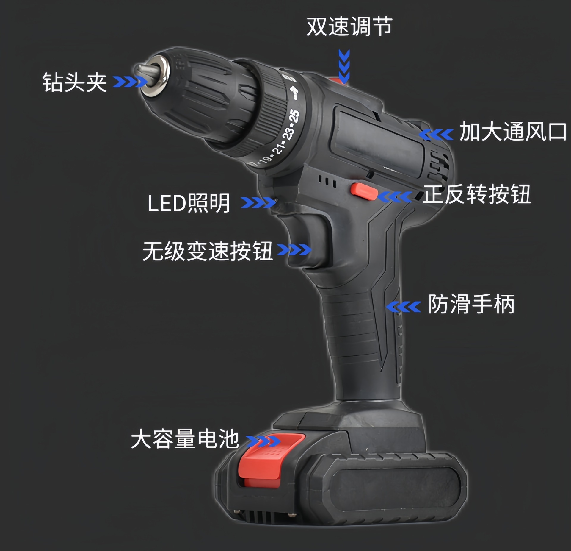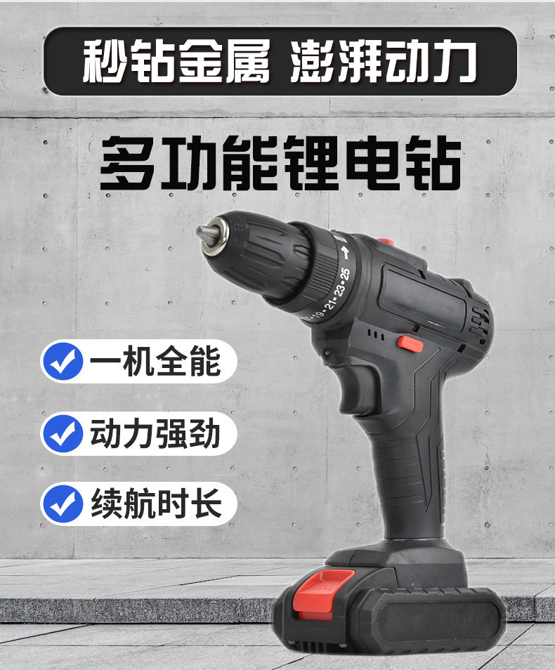 21V锂电手电钻充电式起子机冲击钻多功能家用电动螺丝刀工具套装