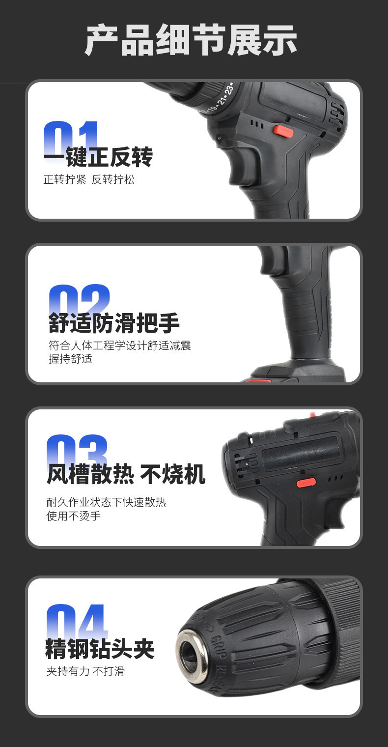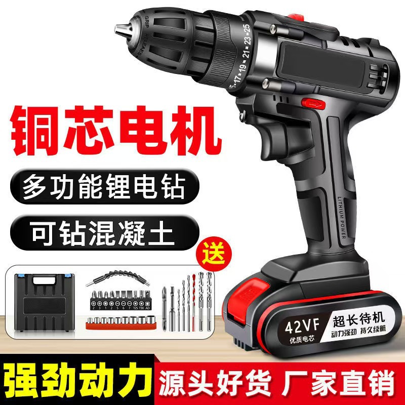 対外貿易供給コードレス懐中電灯ドリル携帯家庭用多機能リチウム電気ドリルDIY小型ピストルドリル卸売り