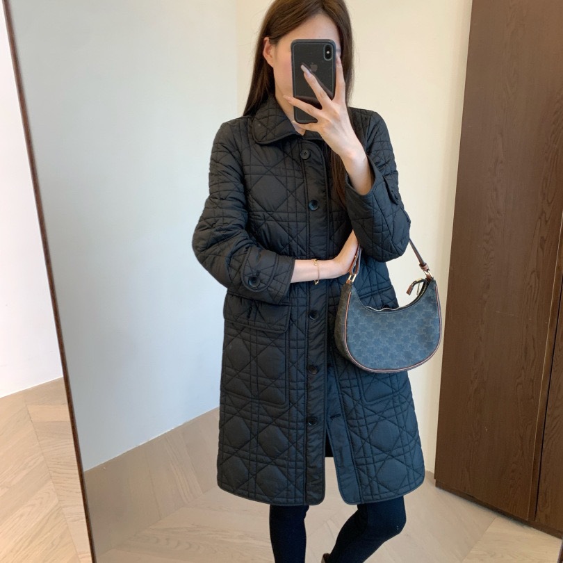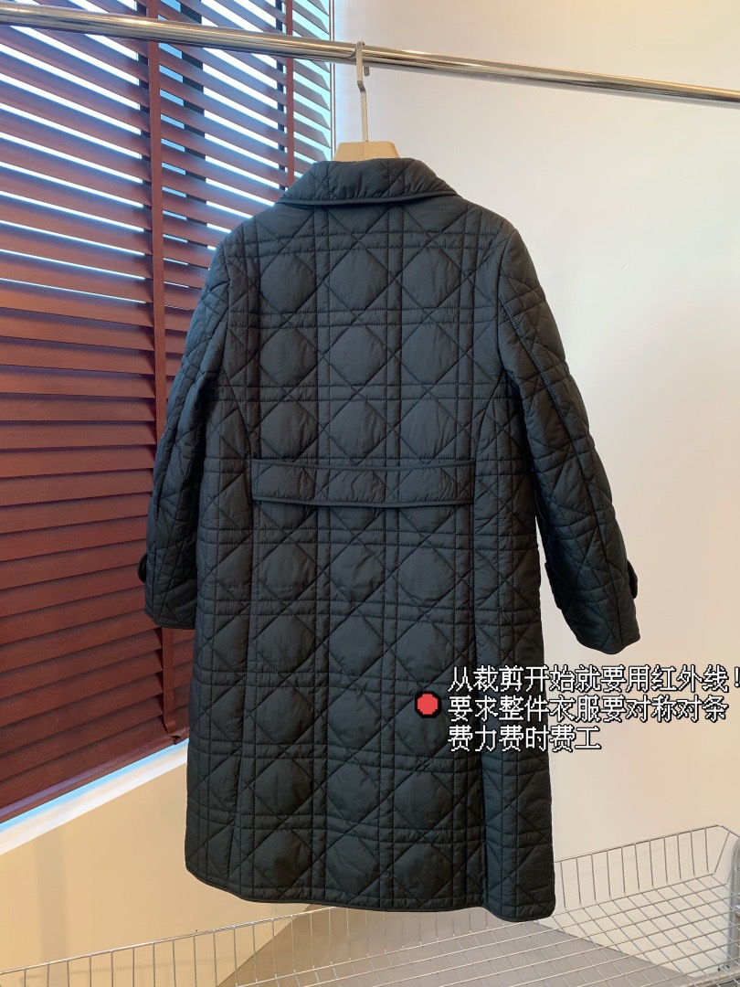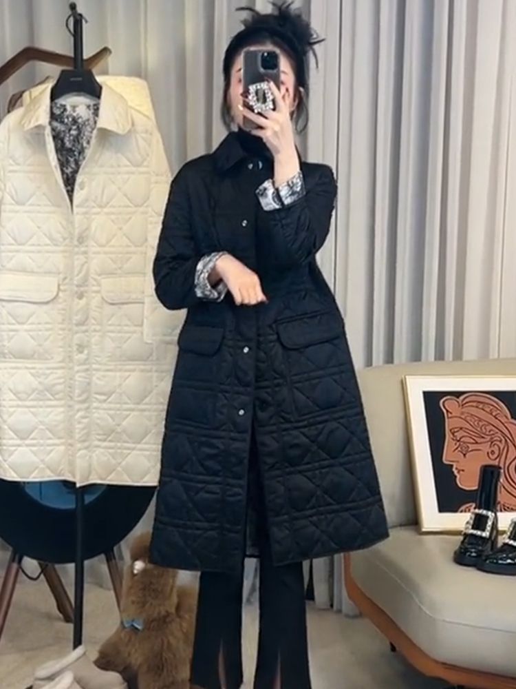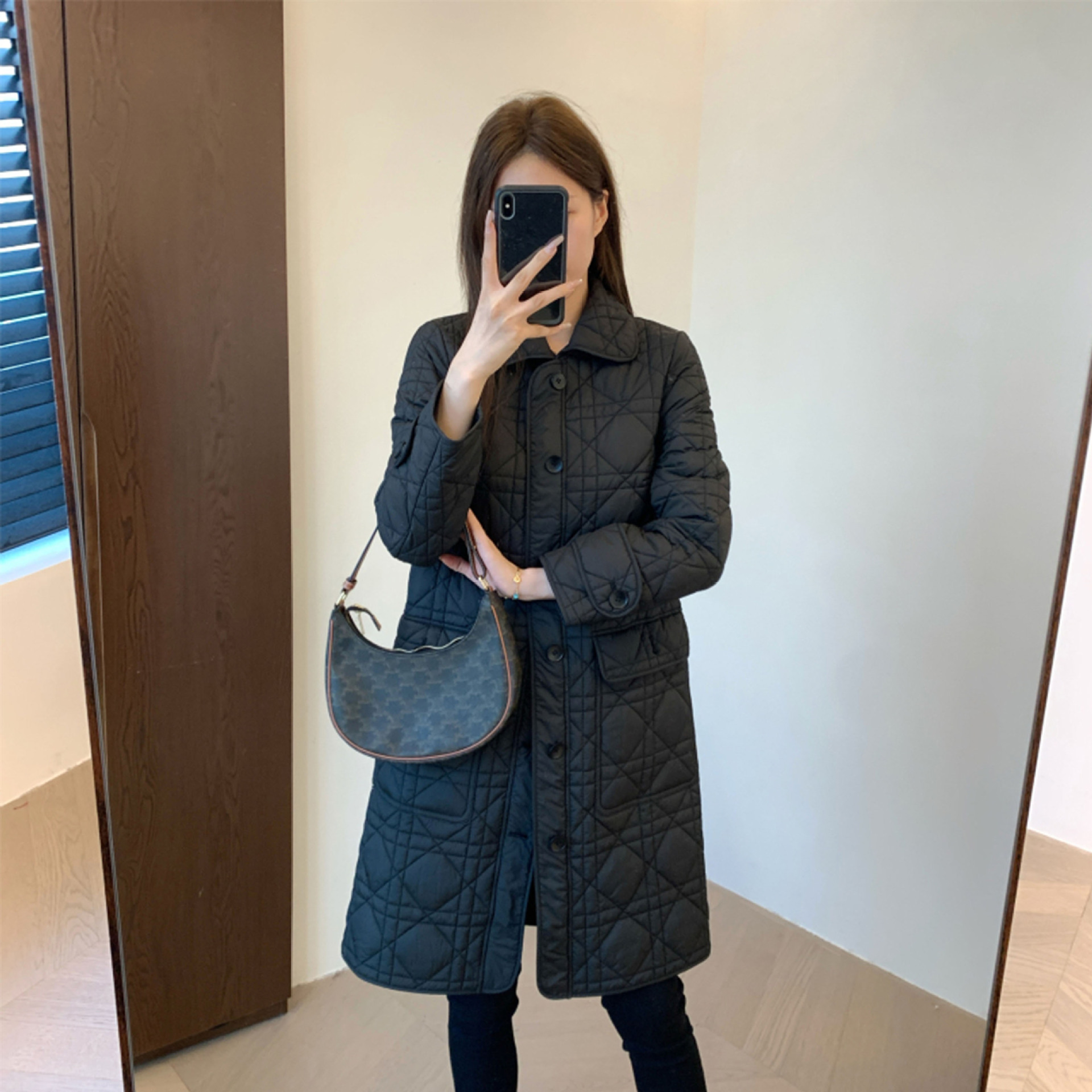 戴妃藤格纹衍缝夹棉中长款棉衣外套!
