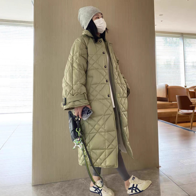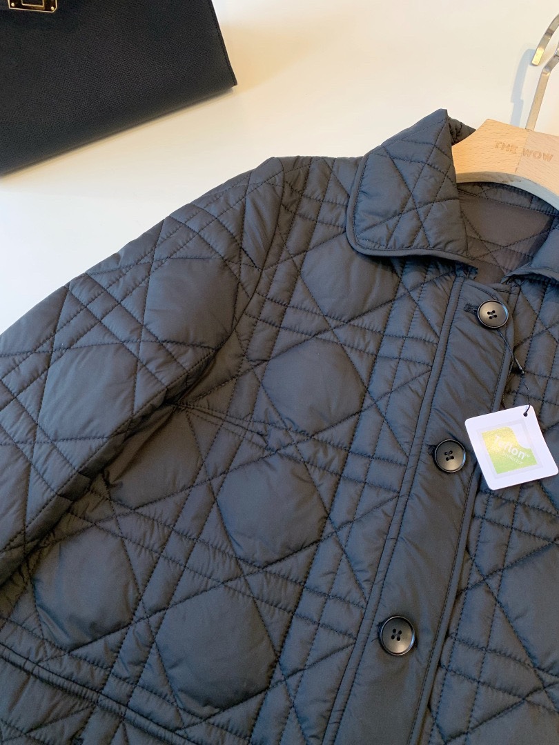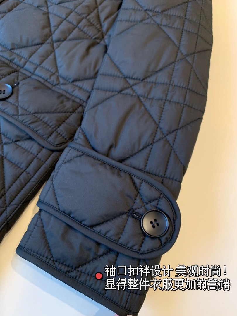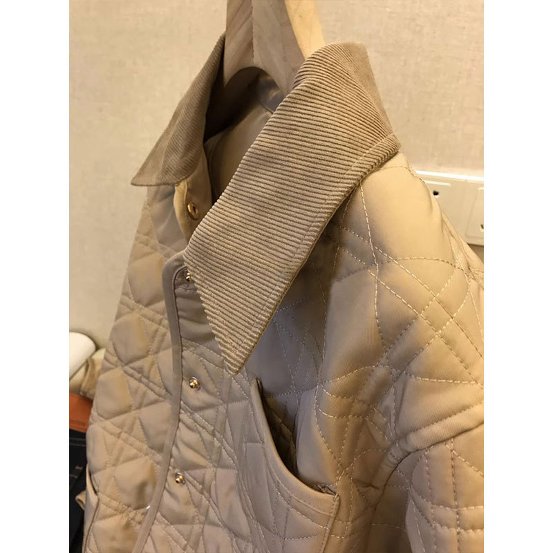 戴妃藤格纹衍缝夹棉中长款棉衣外套!