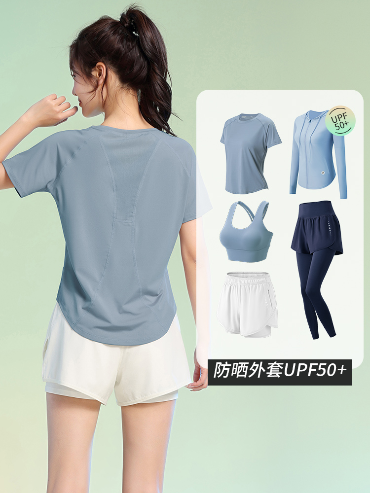 夏薄型アウトドアスポーツスーツ女性のフィットネスルーズ痩身ヨガ服半袖弾性速乾性ランニング服