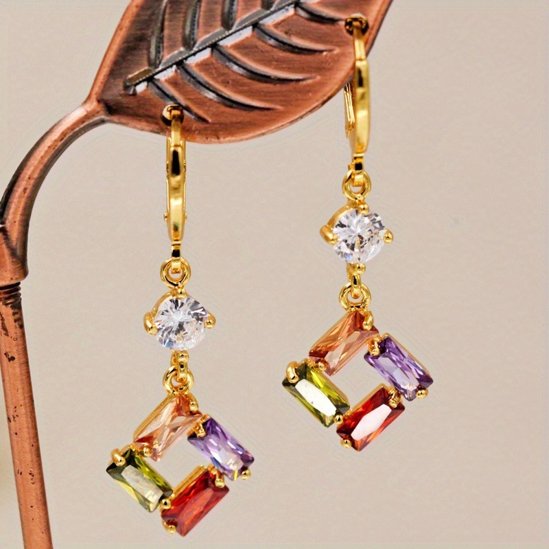 欧米のクロスボーダーのカラーの四角形のジルコンの耳のペンダントの速達は爆発の小さい大衆の高級感の精巧な風の女性の耳飾りの卸売りを売ります。