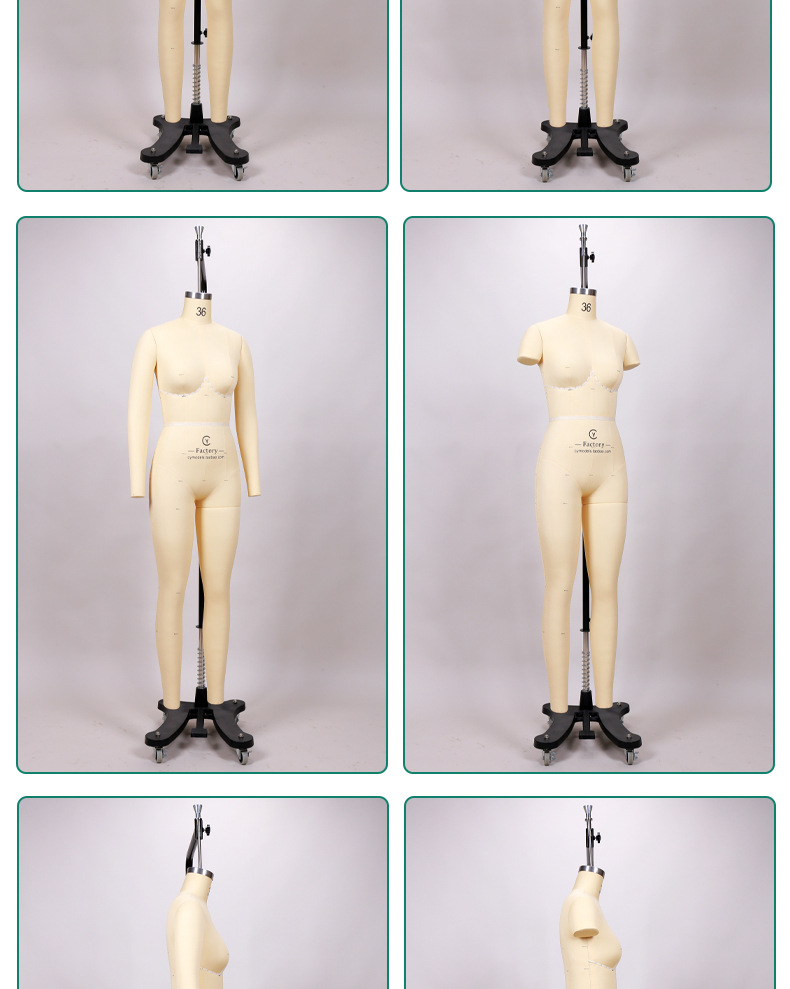 サイズ2の女性の全身+標準ベース,サイズ36の女性の全身+標準ベース,サイズ2の女性の全身+油圧ベース,サイズ36の女性の全身+油圧ベース