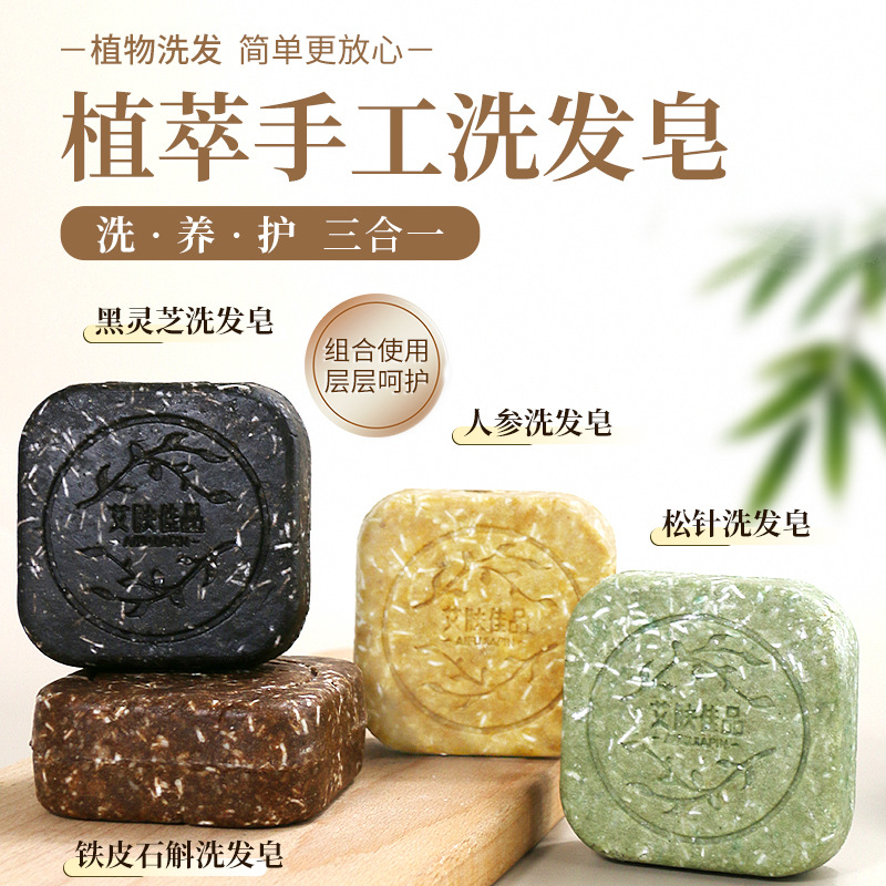 松针洗发皂人参石斛何首乌草本洗头手工皂养发氨基酸侧柏叶洗头皂