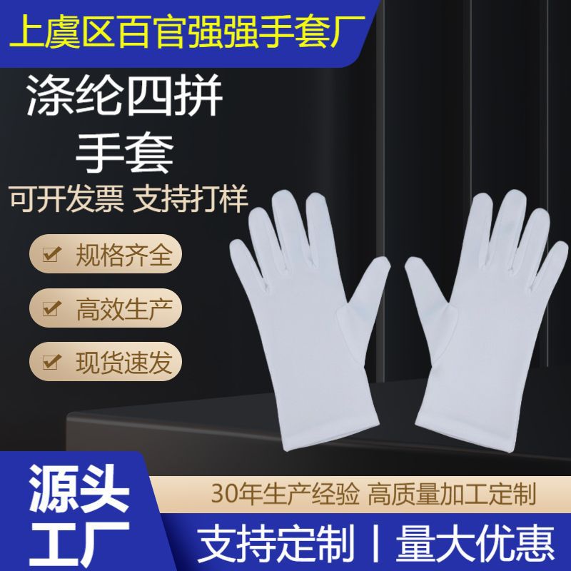 白い儀式用手袋、ポリエステル製、伸縮性あり、パフォーマンス、パレード、指揮用手袋、運転手勤務用、儀式用手袋、三筋手袋