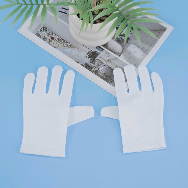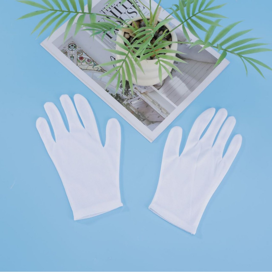 白い手袋の純綿の礼儀の薄いタイプの文は皿の珠の布を遊んで仕事をします。