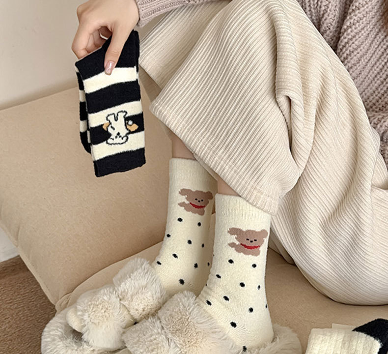 秋冬毛绒绒可爱少女卡通粉色系袜子女加厚保暖居家睡眠袜学生发热