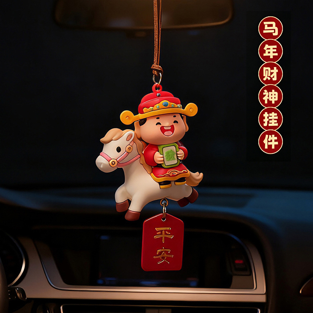 创意国潮风马年吉祥物汽车挂件财神爷公仔钥匙扣电动车内挂饰用品