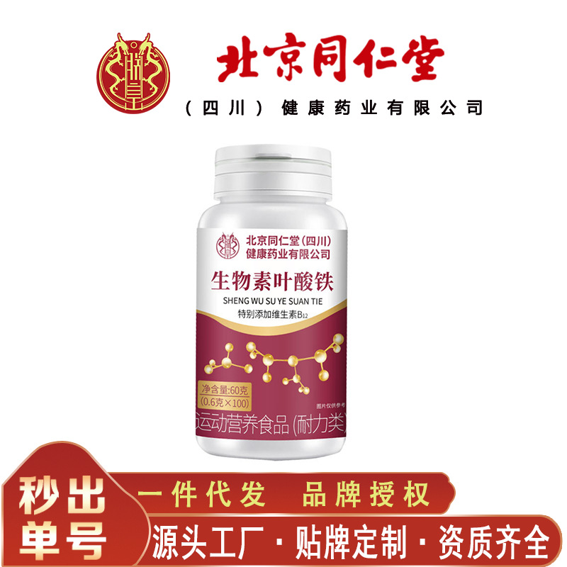 北京同仁堂生物素叶酸铁 便携易吸收60克/瓶 无痕代发