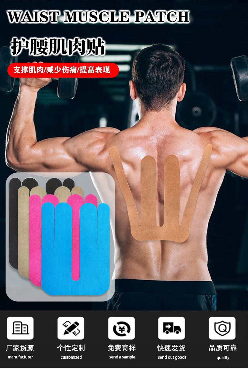事前に筋肉を切って腰の筋肉を保護して運動の異形の弾力の筋肉を貼ります。