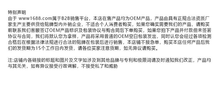 1688.comは中国で生産され、流通している商品を扱うBtoB卸サイトとなります。お客様が弊社サイト内にて仕入処理をされても、日本国内の法律に則り、日本への輸入ができない商材もあり、その場合弊社でも仕入れの手配が出来ません。その際はシステム上で、自動的に注文削除となってしまう事を、恐れ入りますがご了承願います。