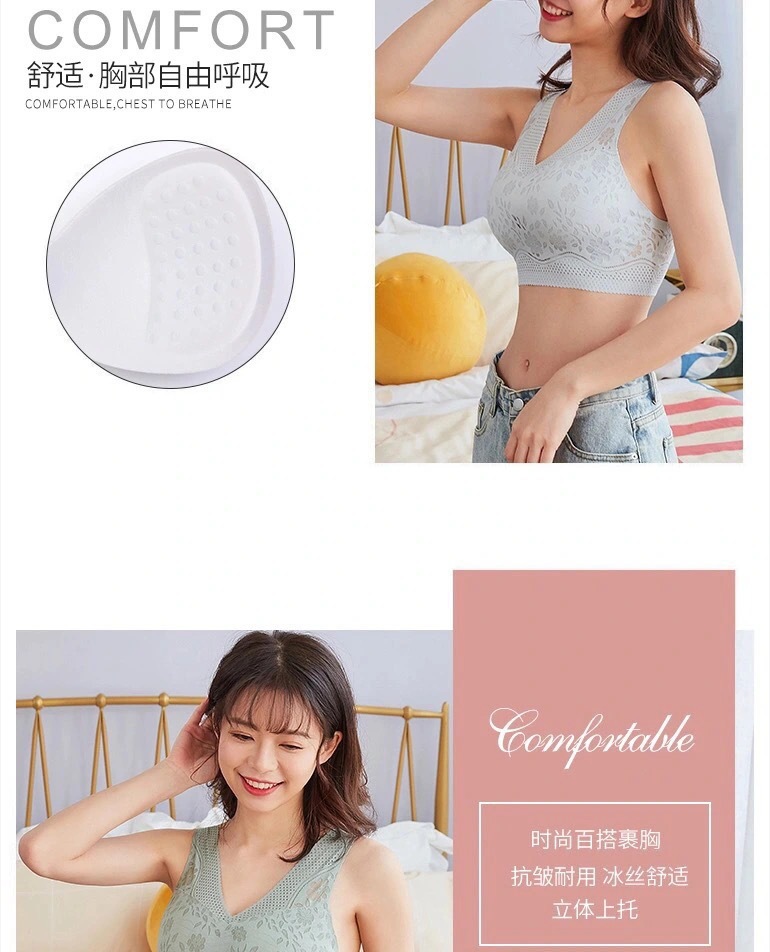 夏薄氷シルク通気性シームレス女性下着女性プッシュアップノンワイヤーブラジャービューティーバックスポーツスリーピングブラジャー