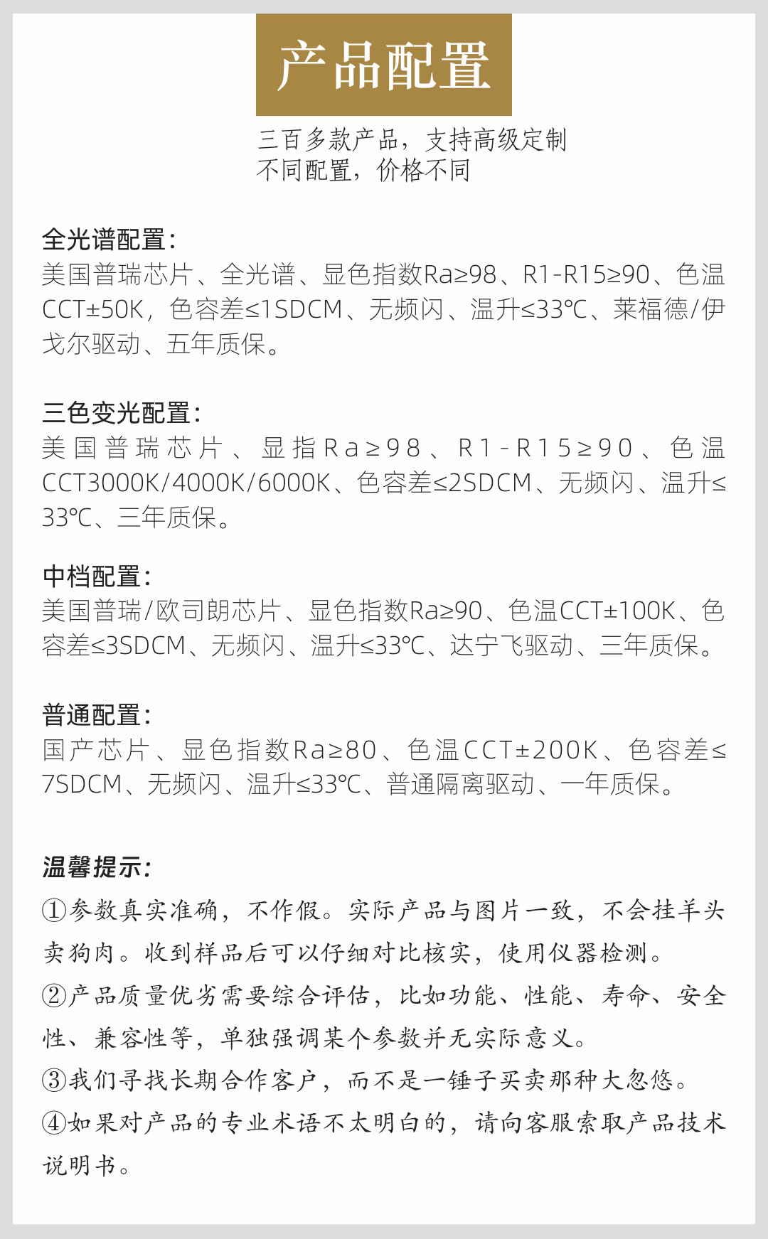 光の色 3000K,4000K,6000K