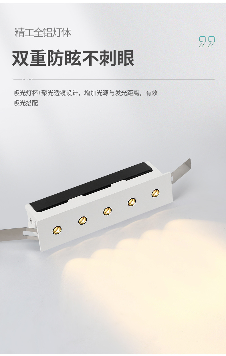 小さな丸穴埋め込み型グリルランプ長条形バーランプ線型ランプ普瑞全スペクトル防眩暈保護眼無主灯