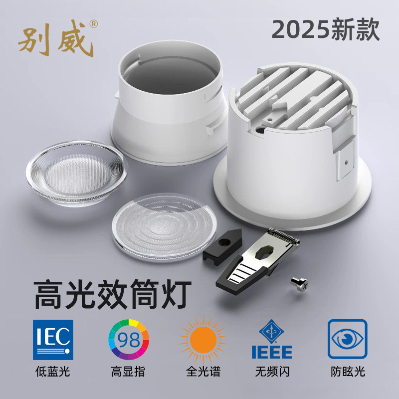 2025年の新型高光効果の埋め込み式ダウンライトのアメリカの普瑞の全スペクトルの防眩しさの保護の目の主な明かりがありません。