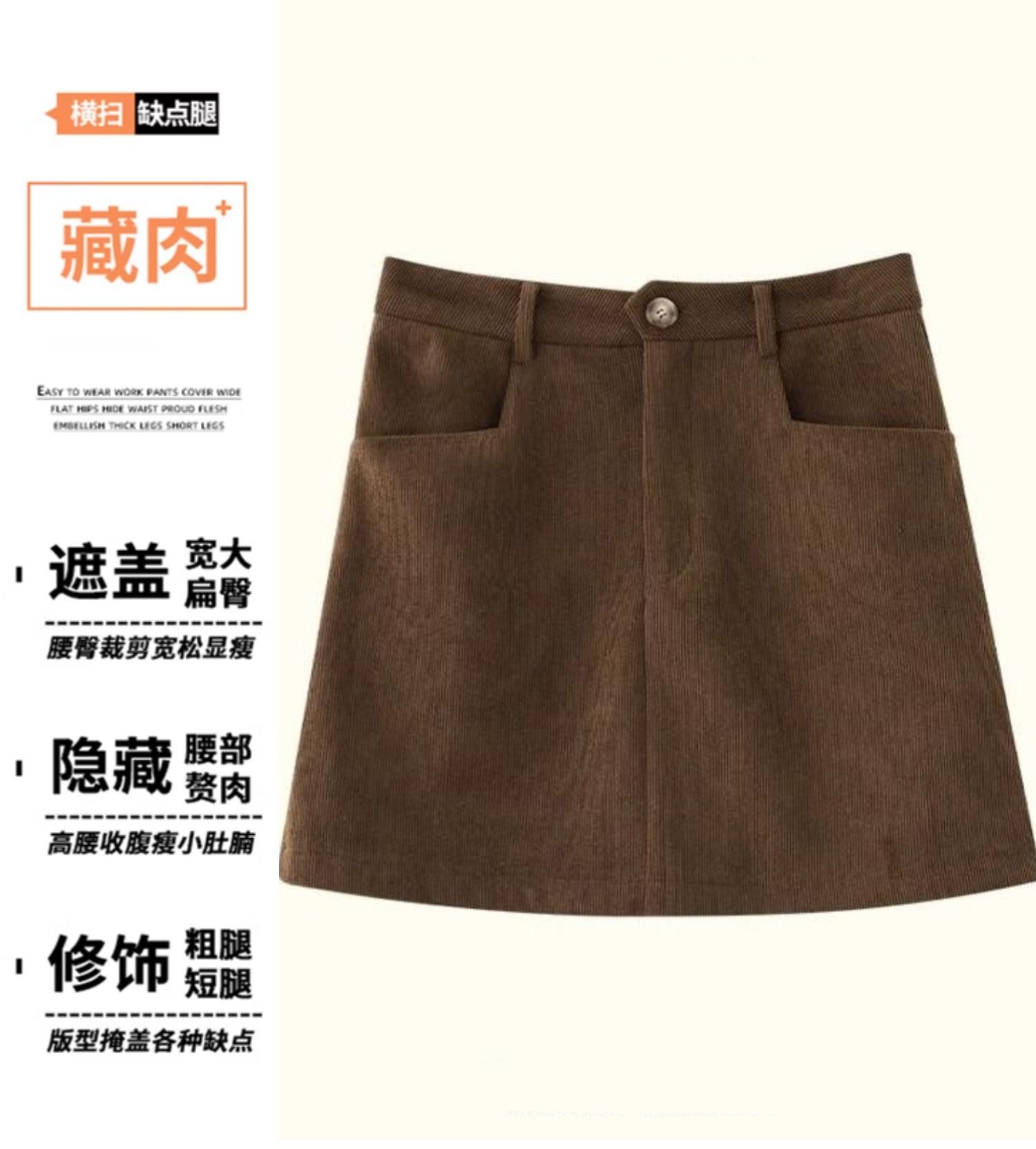 大きいサイズのレトロなカレー色の厚いコーデュロイスカート