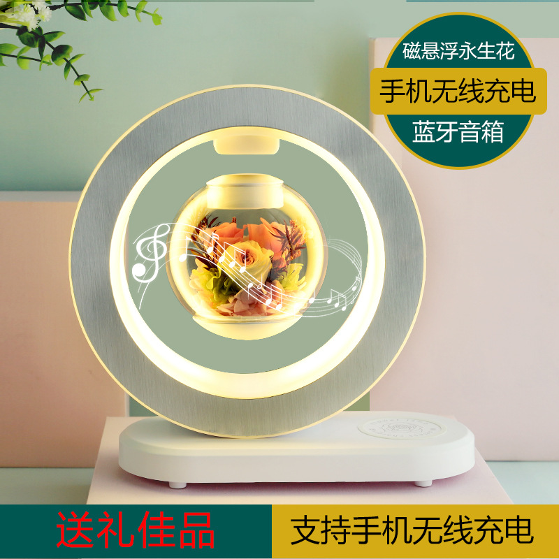 磁気浮上永生花bluetoothオーディオ携帯電話充電多機能スタンドは友人の誕生日新婚プレゼントを飾る