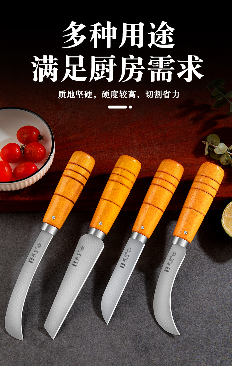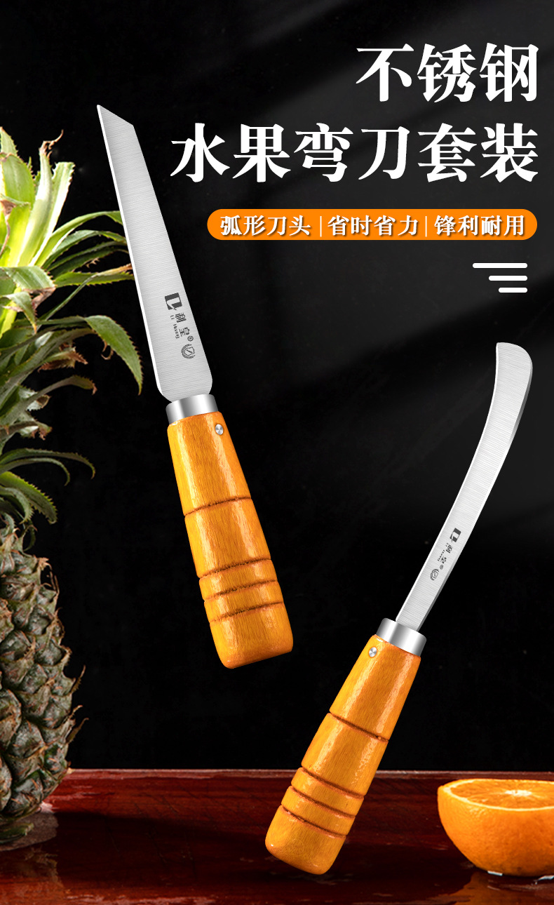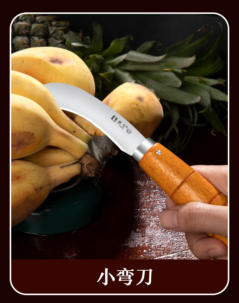 不锈钢木柄小弯刀水果刀菠萝刀香蕉刀削皮刀锋利小镰刀割菜刀具