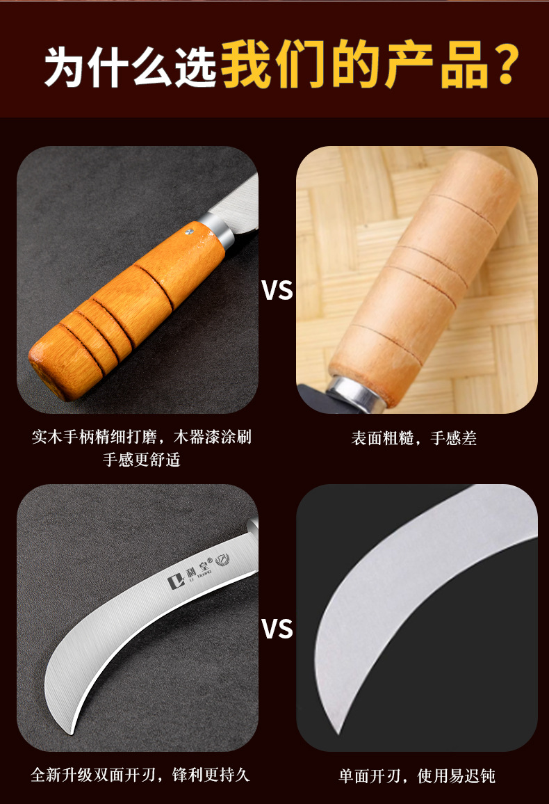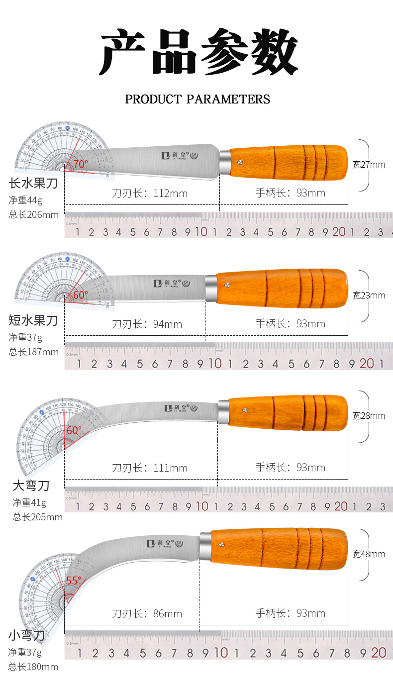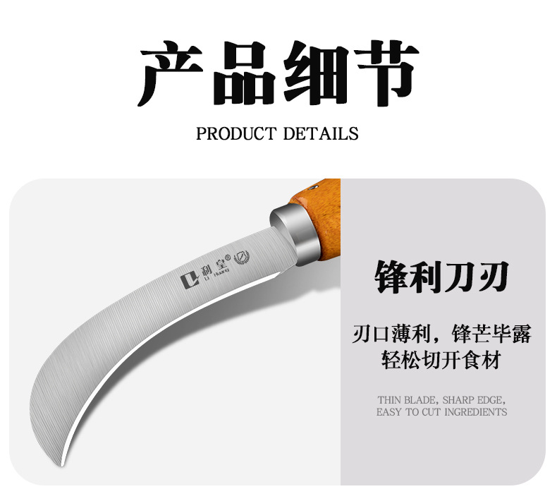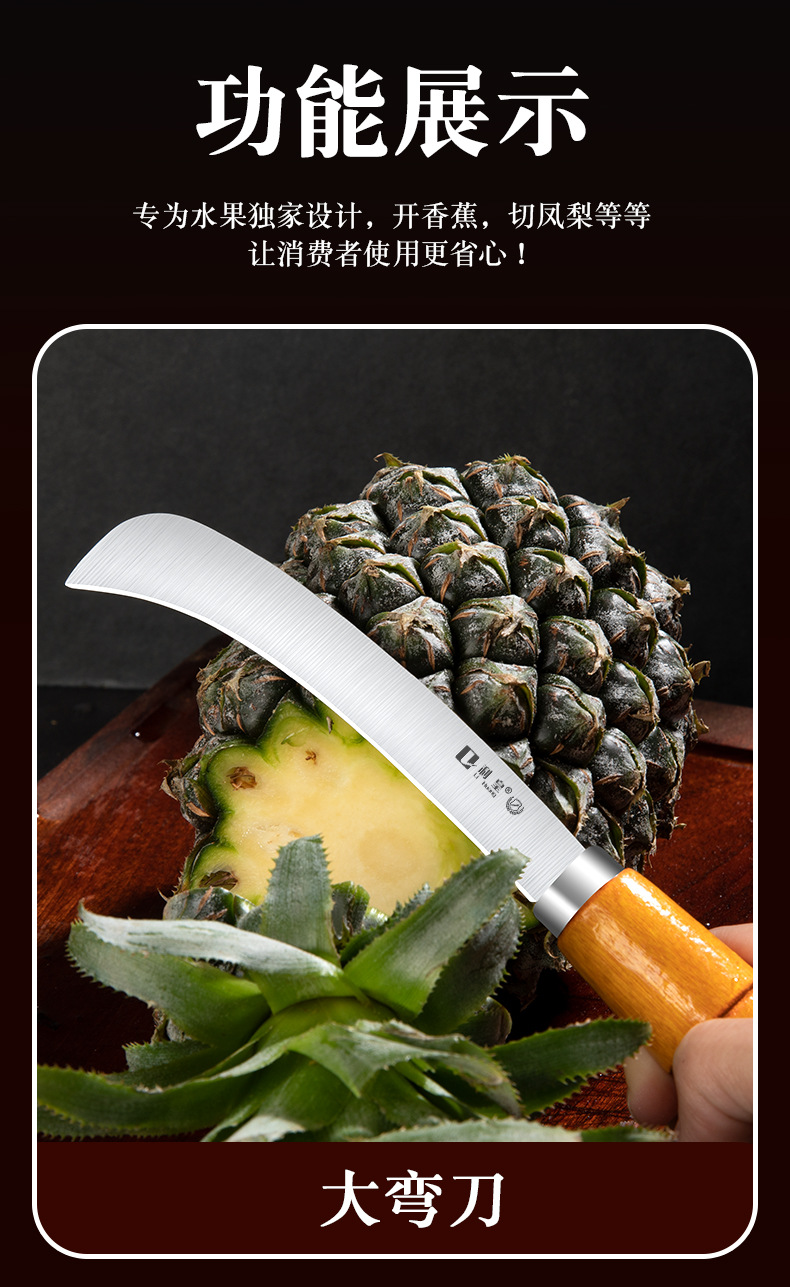 不锈钢木柄小弯刀水果刀菠萝刀香蕉刀削皮刀锋利小镰刀割菜刀具